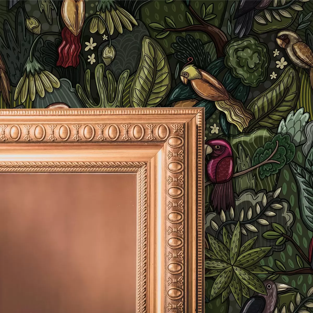 Tapetti Eksoottisia lintuja viidakossa kaiverruksen tyyliin Nr. a00157