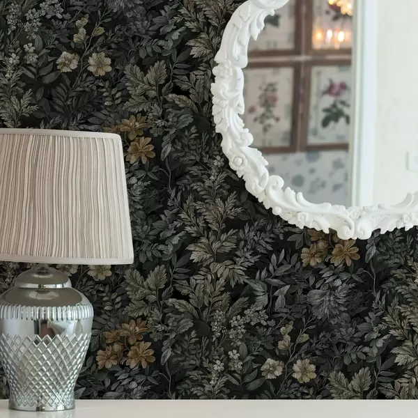 Tapetti Tumma painatus villien kukkien kanssa Nr. a00159