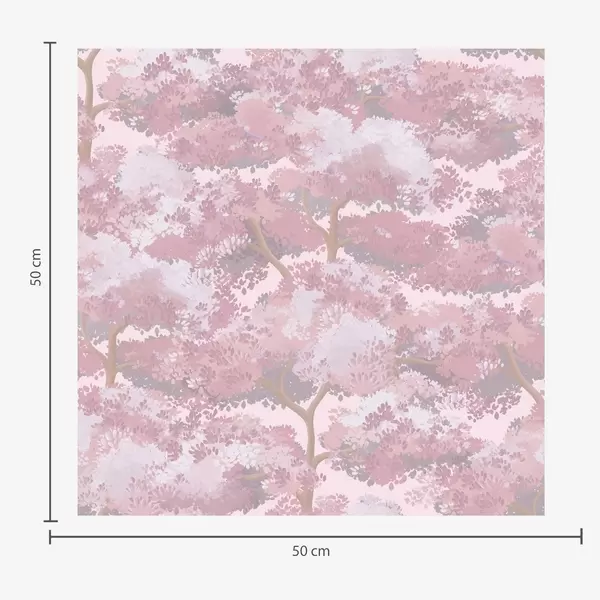 Tapetti Vaaleanpunainen piirustus puista japanilaiseen kirsikankukkatyyliin Nr. a00170v3