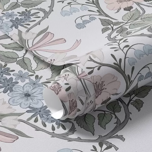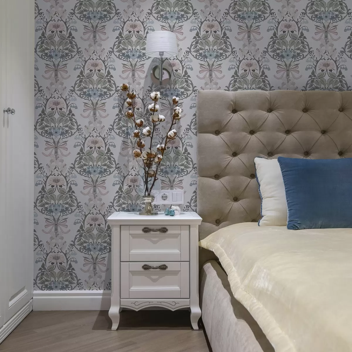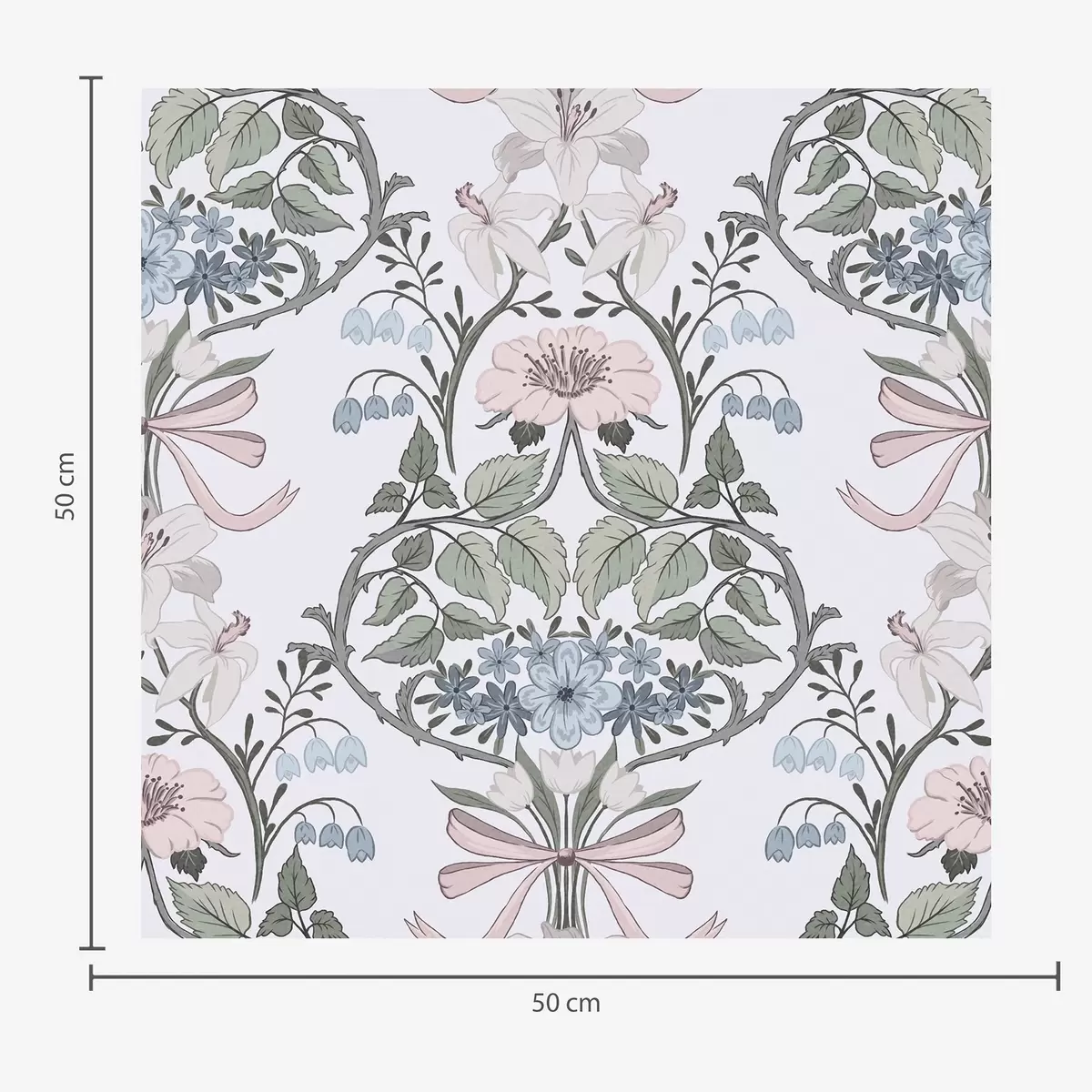 Tapetti Retro kukkakuvio, jossa on rusetteja ja silmuja Nr. a00174
