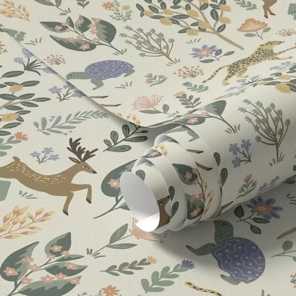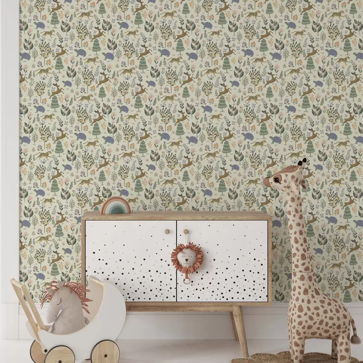 Tapetti Retro kuvitus leopardeja, puita ja peuroja kanssa Nr. a00184