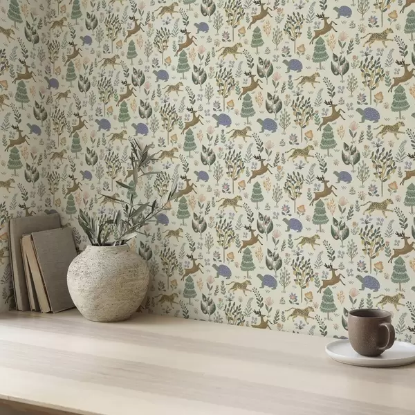 Tapetti Retro kuvitus leopardeja, puita ja peuroja kanssa Nr. a00184