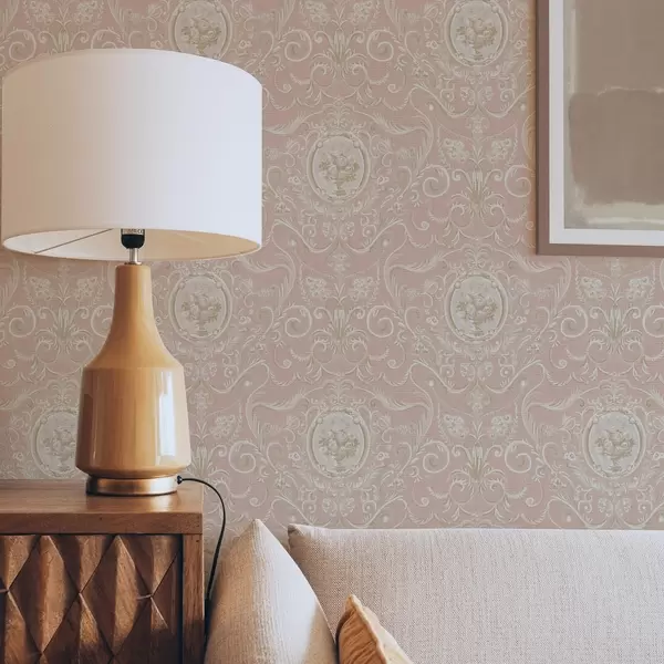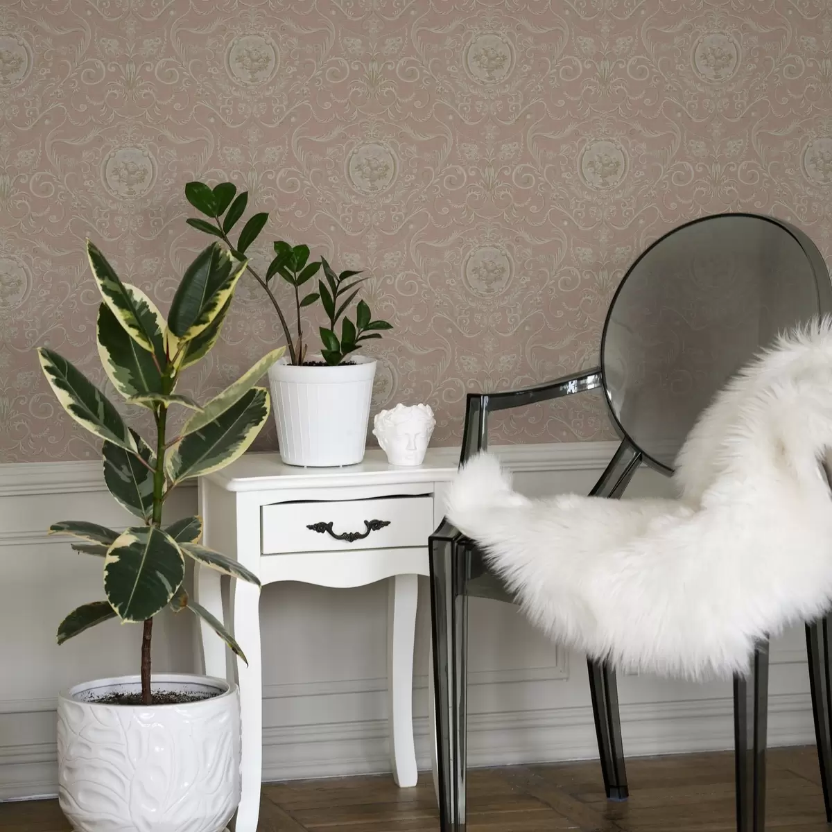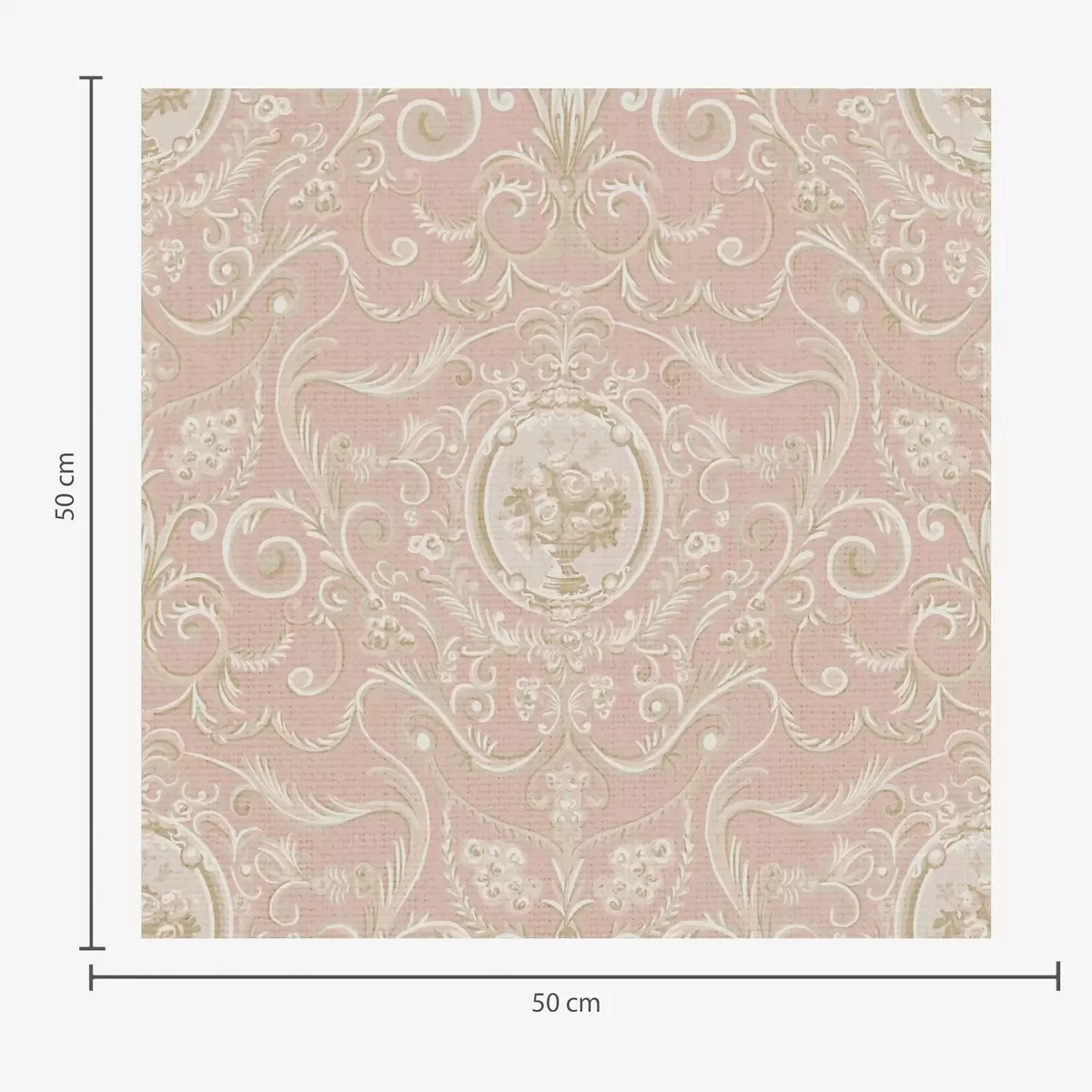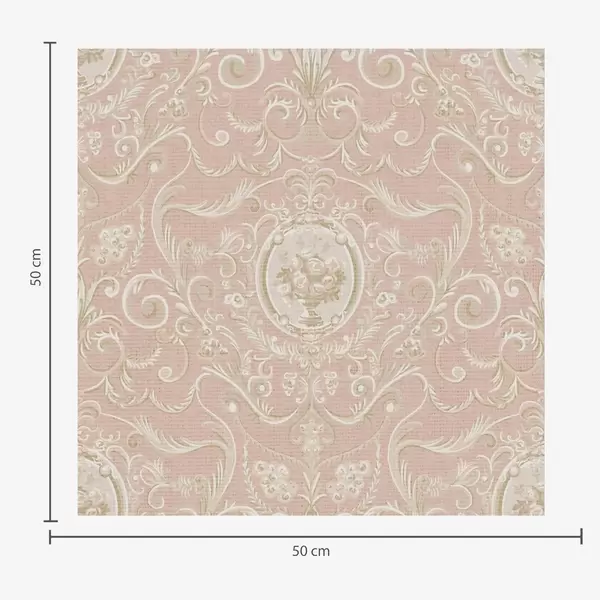 Tapetti Vaaleanpunainen klassinen kuvio, jossa on medaljonkeja ja kukkia Nr. a00185
