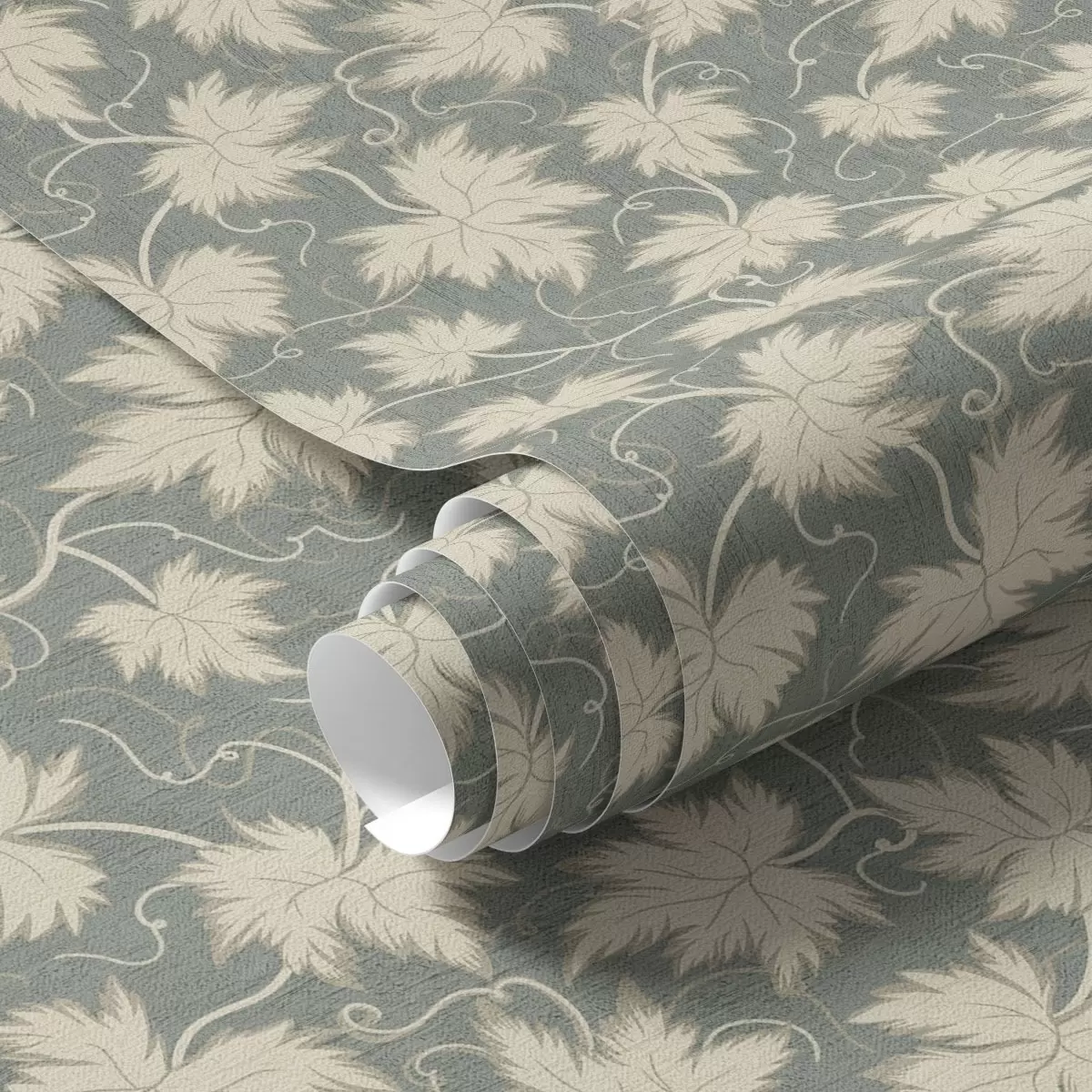 Tapetti Valkoinen viinirypäleen lehti vihreällä pohjalla Nr. a00194