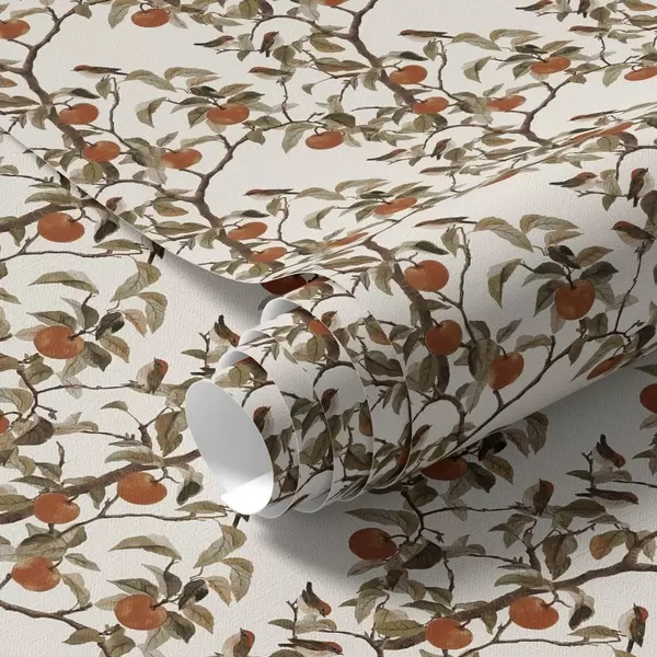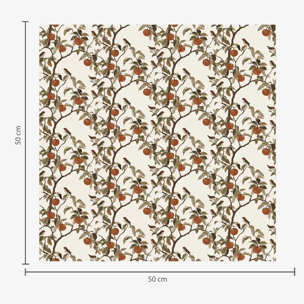 Tapetti Lintuja ja appelsiineja oksilla, vintage kasvitieteessä Nr. a00208