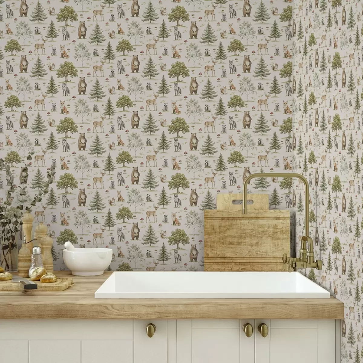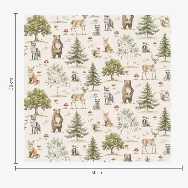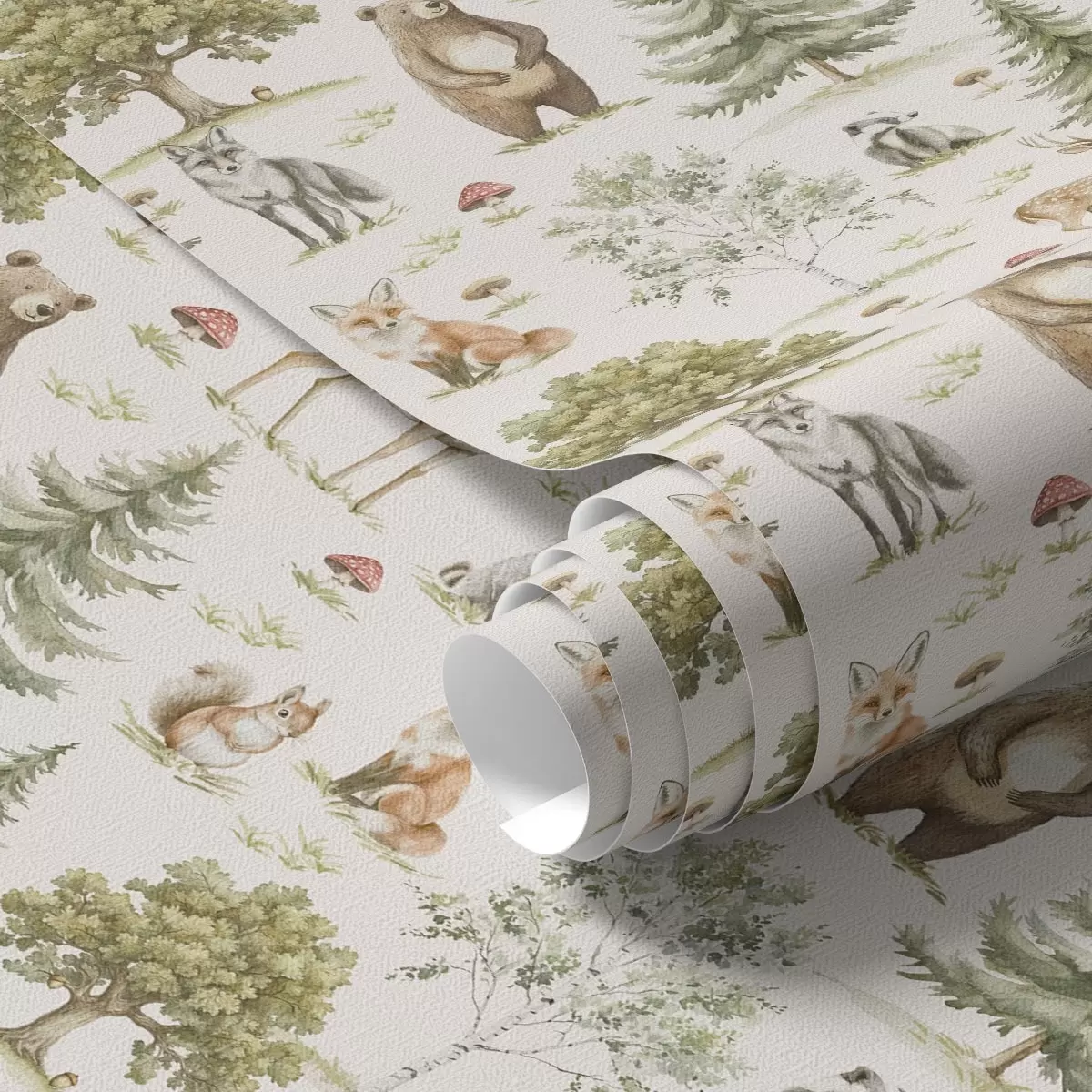 Tapetti Metsän eläimiä pehmeällä akvarellityylillä, puita ja sieniä Nr. a00212