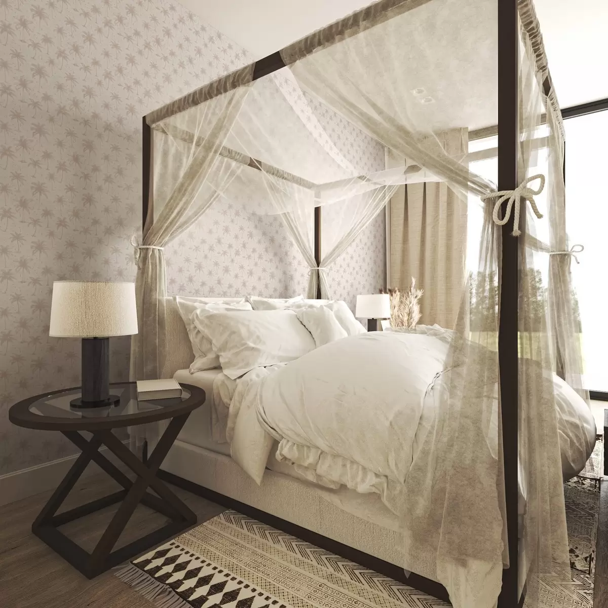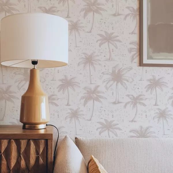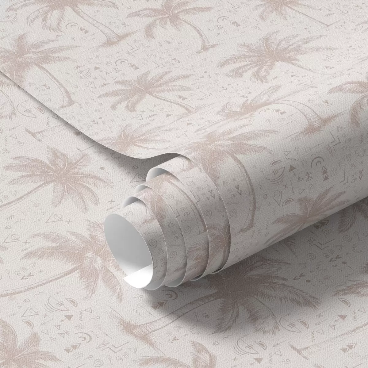 Tapetti Palmuja etnisiä symboleja, pastelli vaaleanpunainen sävyyn Nr. a00213