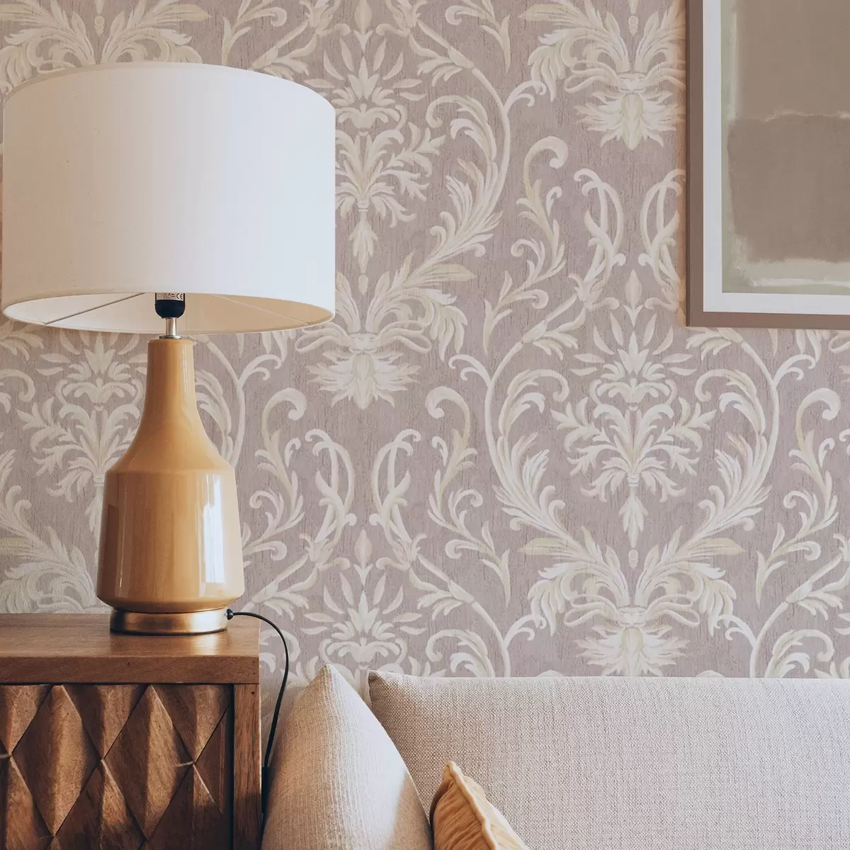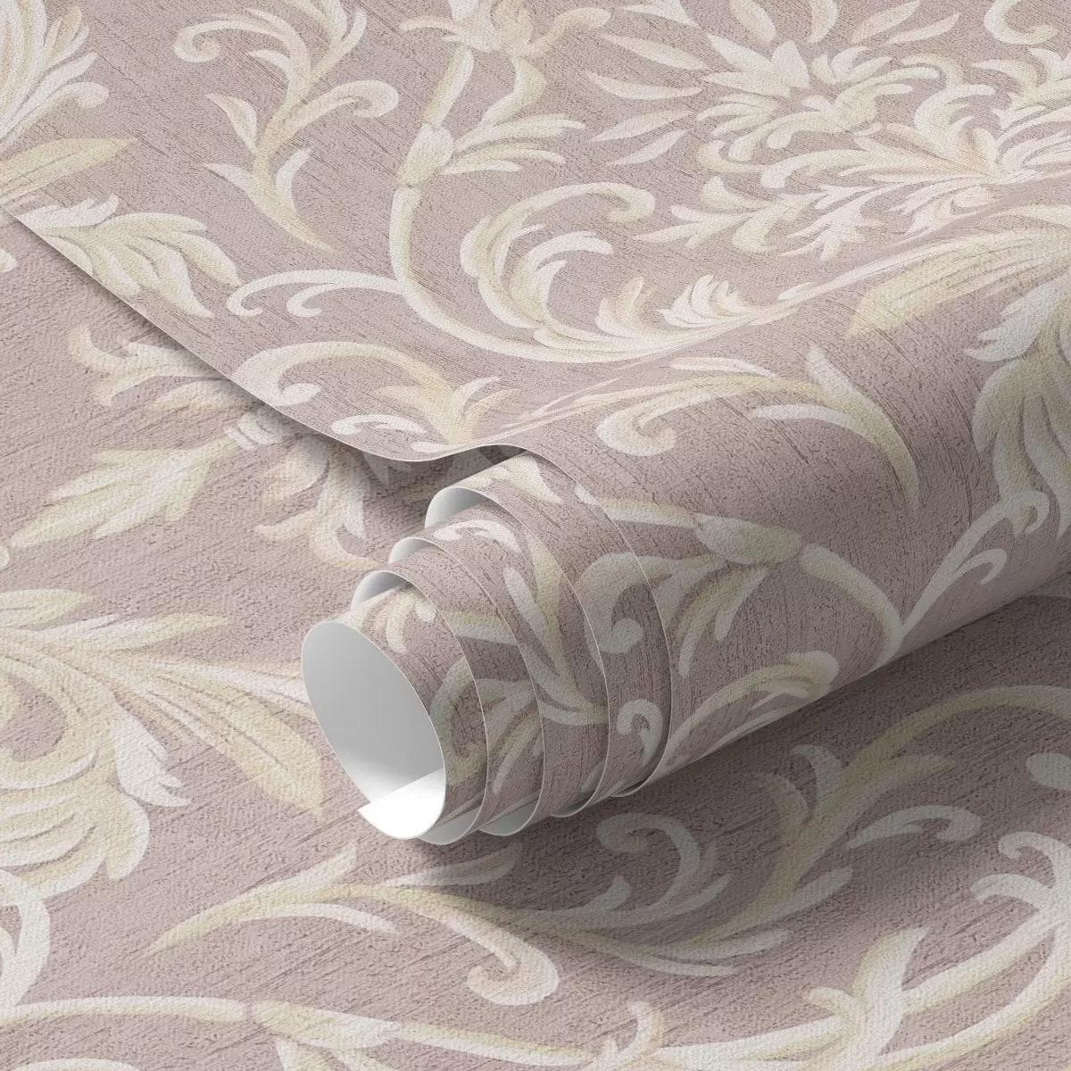 Tapetti Klassinen damasti vaaleanpunaisella pohjalla, barokkikuviointi Nr. a00227