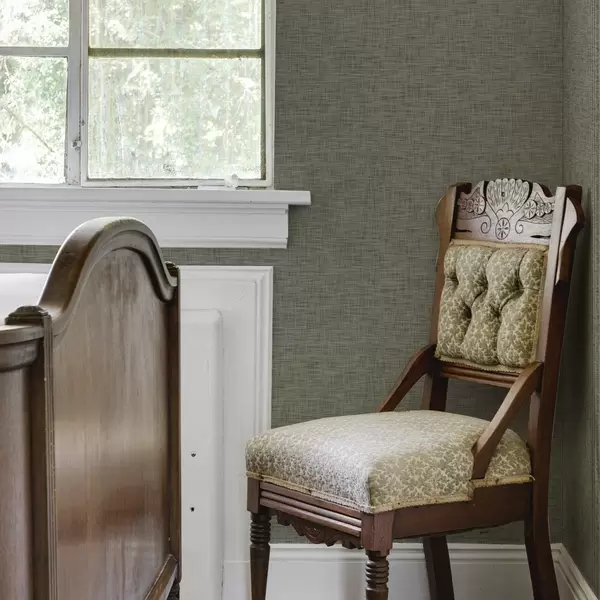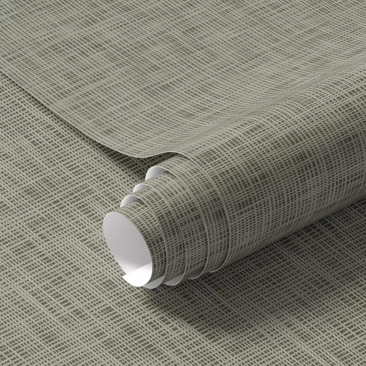 Tapetti Harmaanvihreä kankaan rakenne, pellavainen ruudukkokuvio Nr. a00235