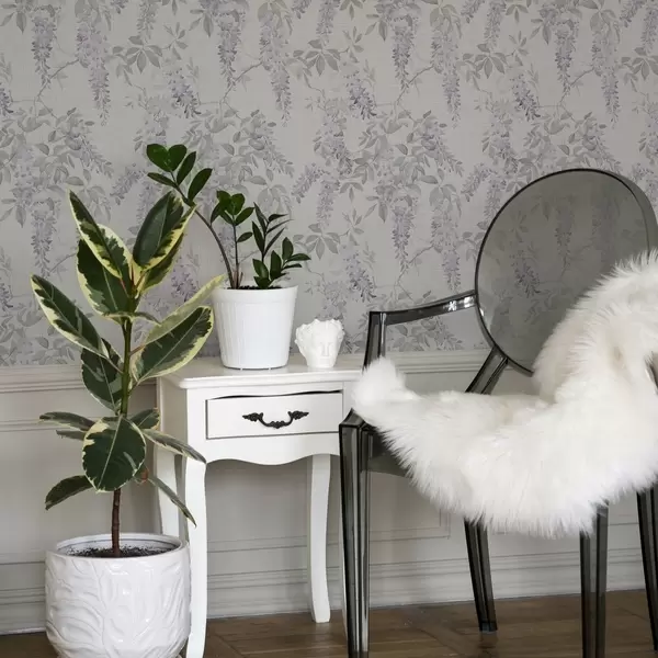 Tapetti Lilac wisteria valkoisella pohjalla, akvarelli tyyliin Nr. a00239