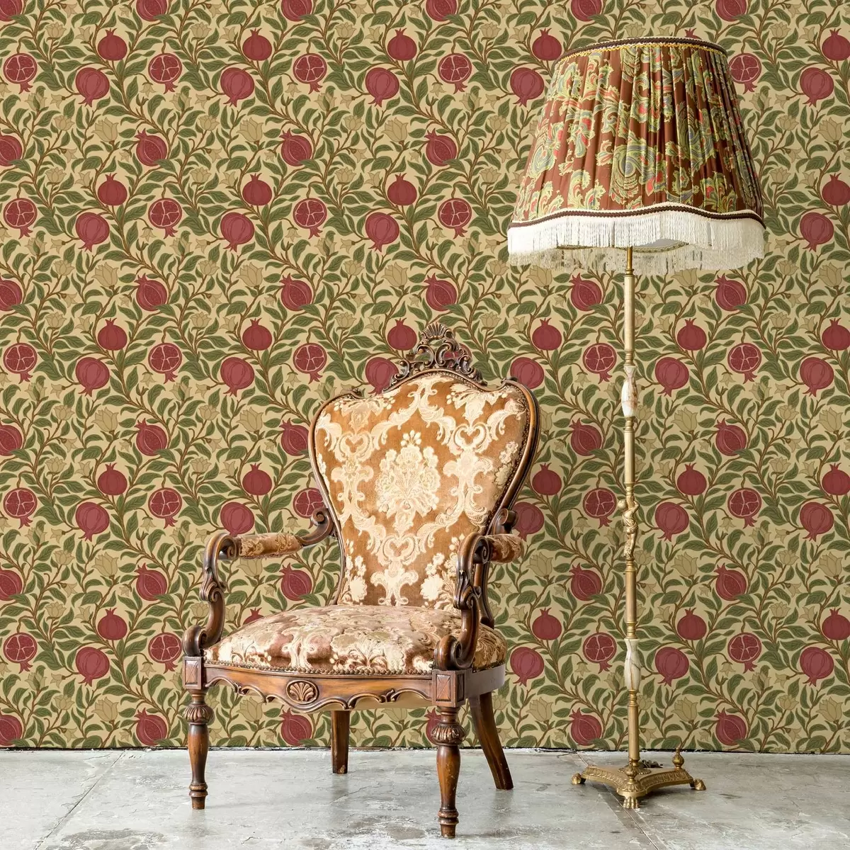 Tapetti Granaattiomenoita ja kukkia William Morrisin tyyliin Nr. a00240