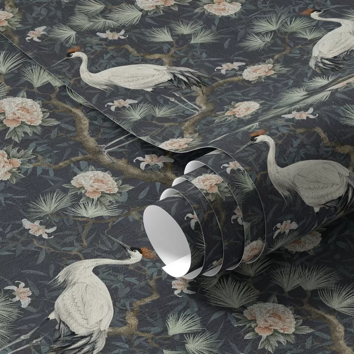 Tapetti Kurjet mäntyjen ja pionien keskellä tummalla taustalla Nr. a00241