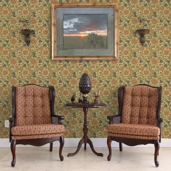 Tapetti Retro kuvio oransseilla ja sinisillä kukilla Nr. a00245