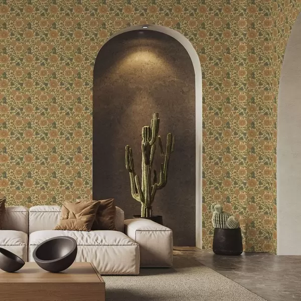 Tapetti Retro kuvio oransseilla ja sinisillä kukilla Nr. a00245