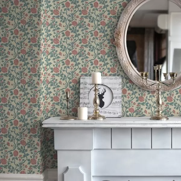 Tapetti Retro-kuvio, jossa on punaisia ja vihreitä kukkia Nr. a00250