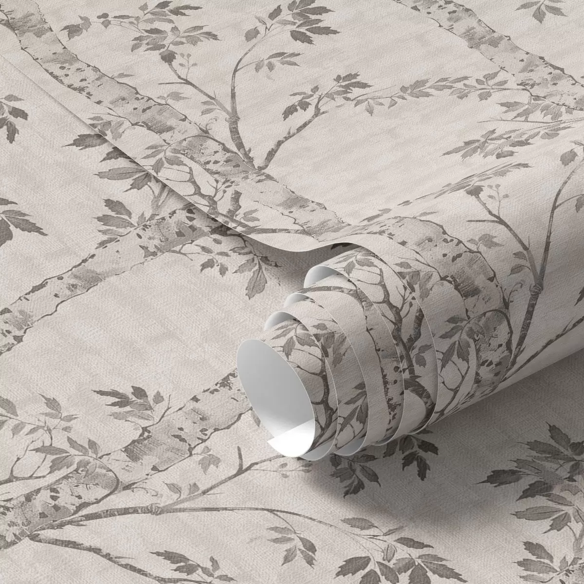 Tapetti Koivun oksat ja lehdet, kuvioitu tausta Nr. a00257v1