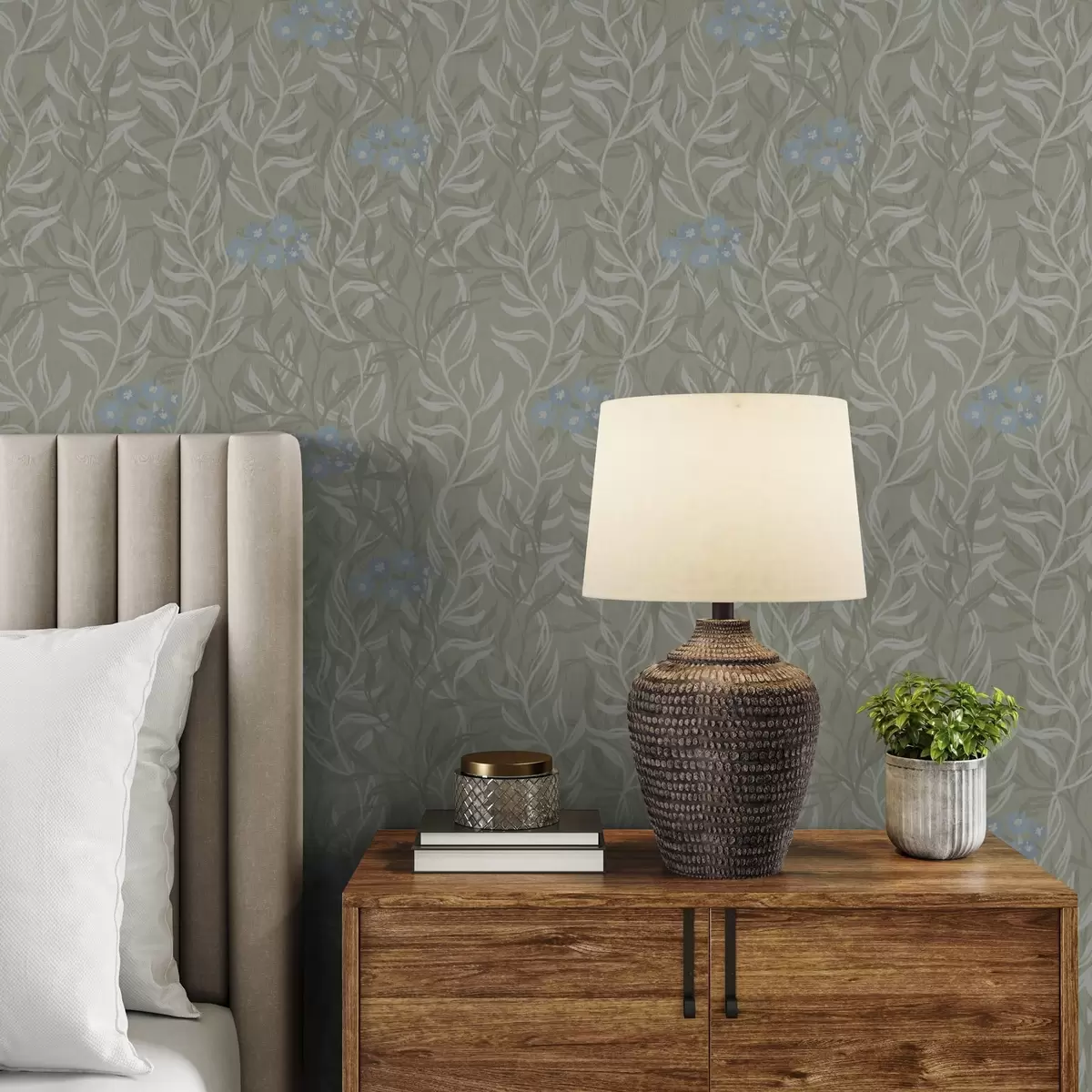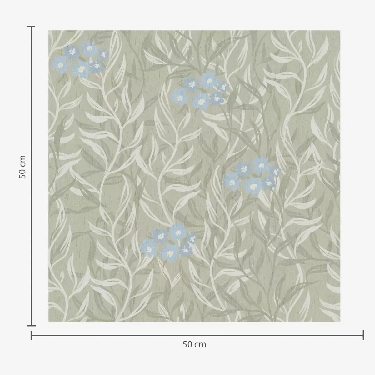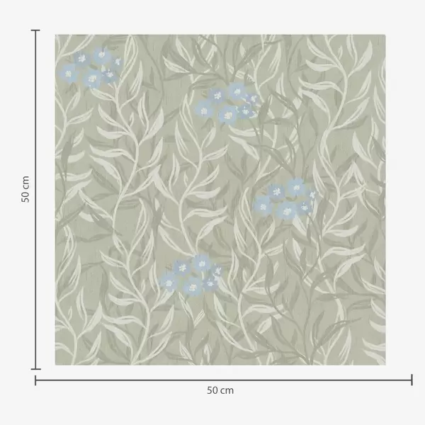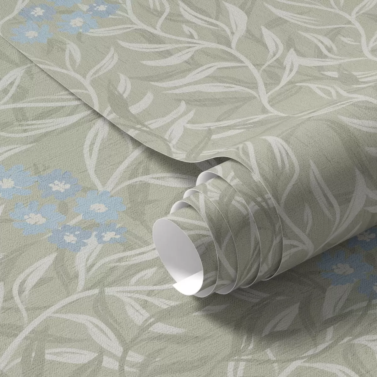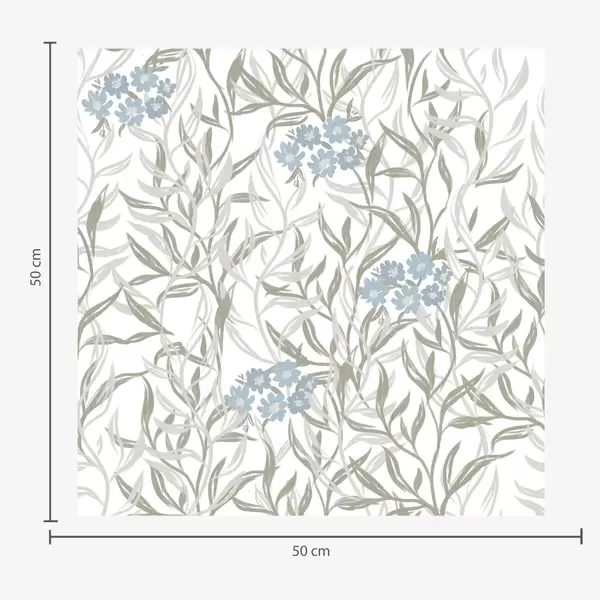 Tapetti Vihreä tausta valkoisilla oksilla ja sinisillä kukilla Nr. a00268v1