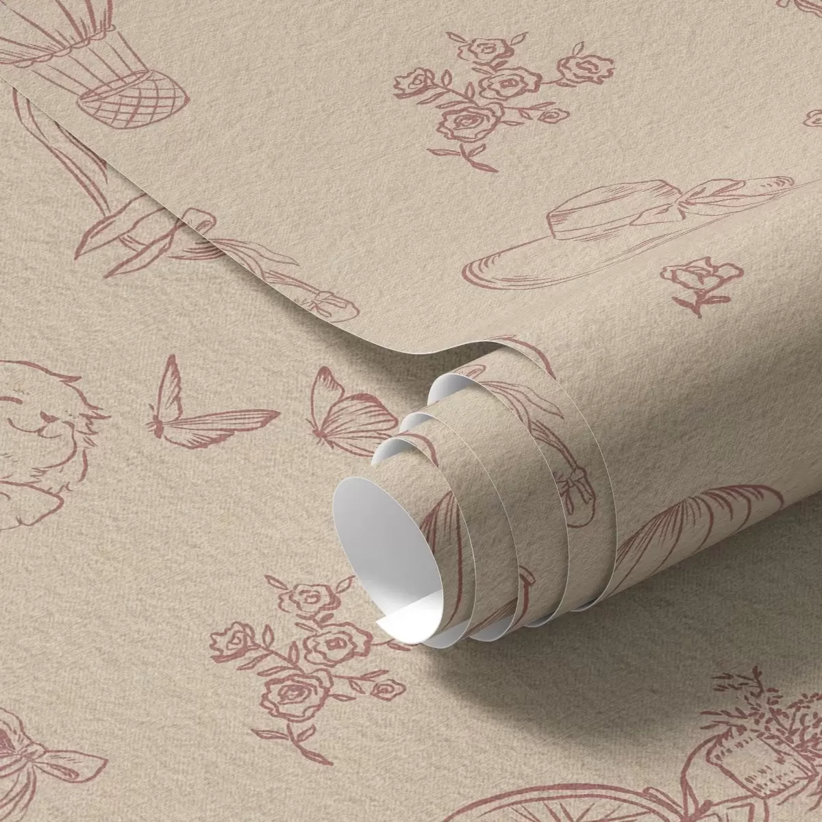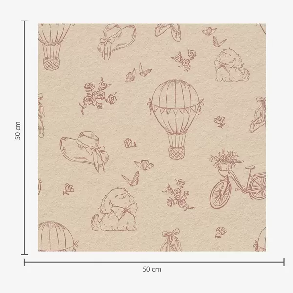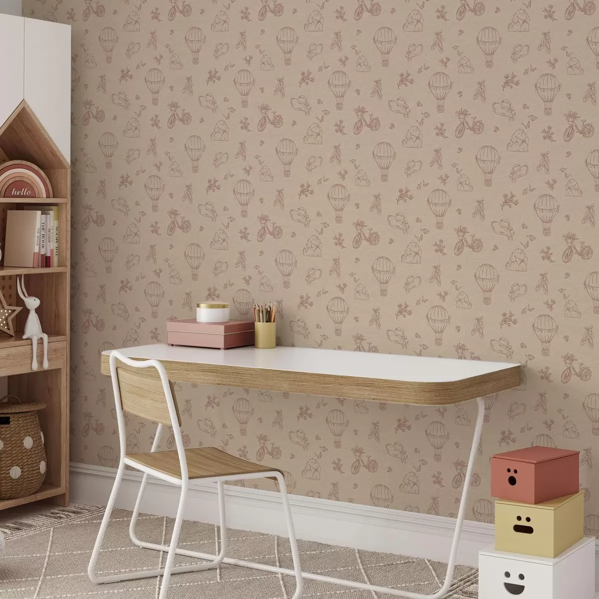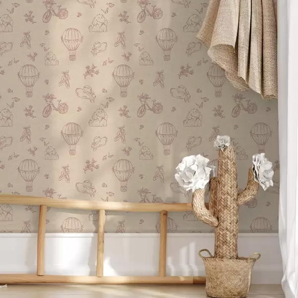 Tapetti Vauvan vaaleanpunainen kuvio, jossa on koira, kukkia ja ilmaa Nr. a00279