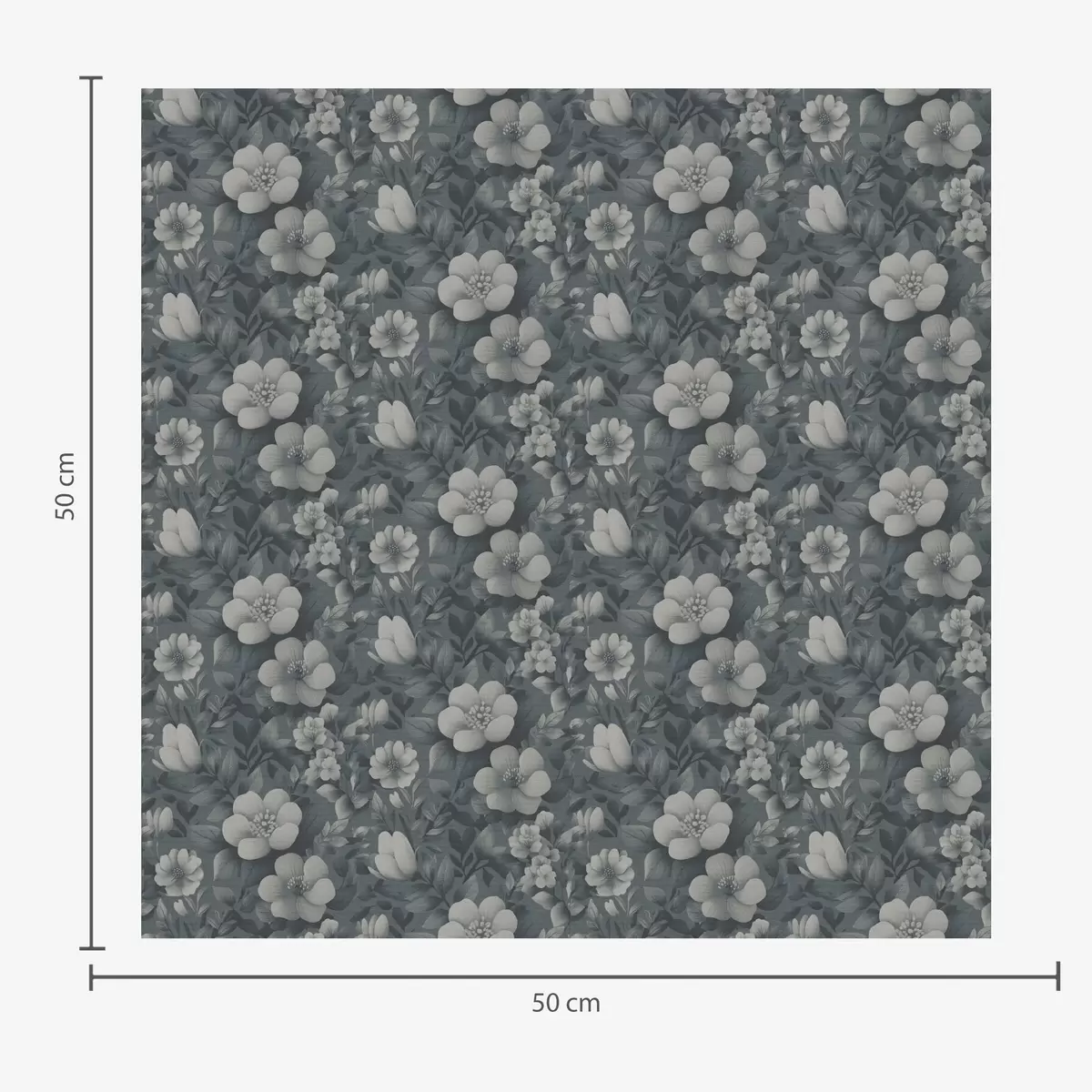 Tapetti Tummansininen kuvio, jossa on runsaasti valkoisia kukkia Nr. a00282