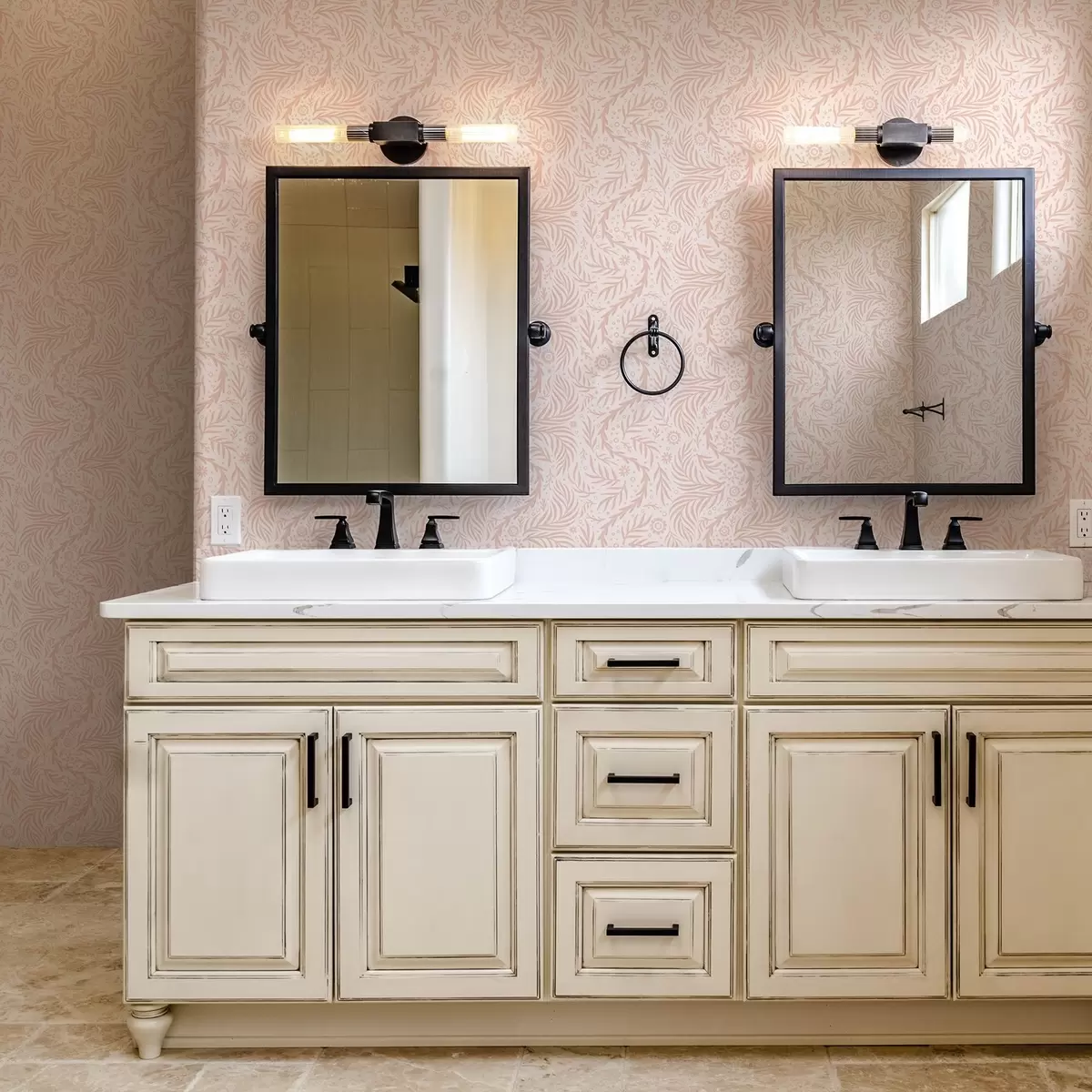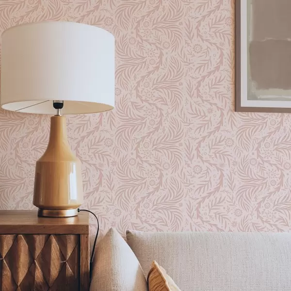 Tapetti Vaaleanpunaisia kukkaelementtejä vaaleanpunaisella pohjalla Nr. a00290