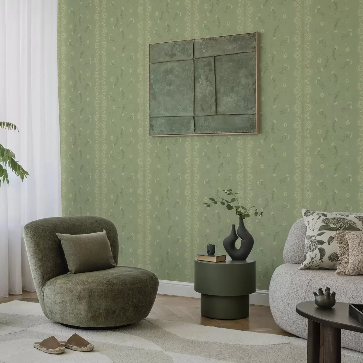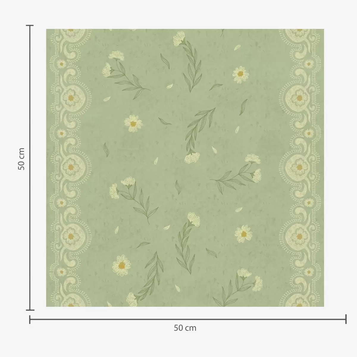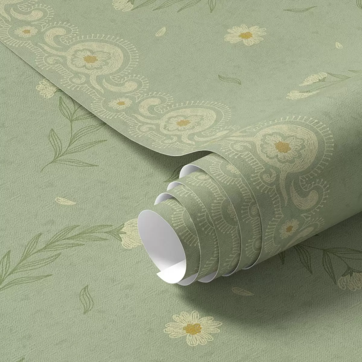 Tapetti Vihreä tausta, jossa päivänkakkaroita ja pitsireunus Nr. a00291