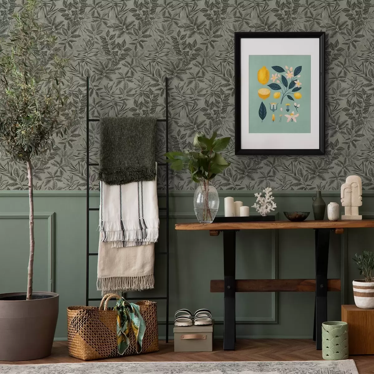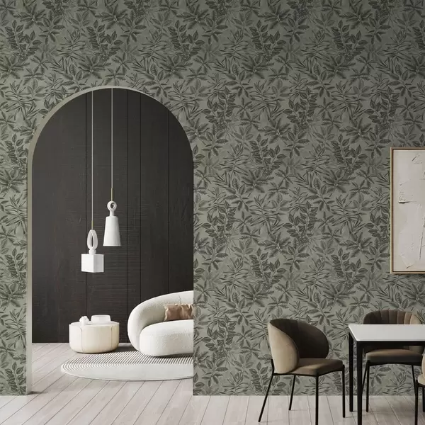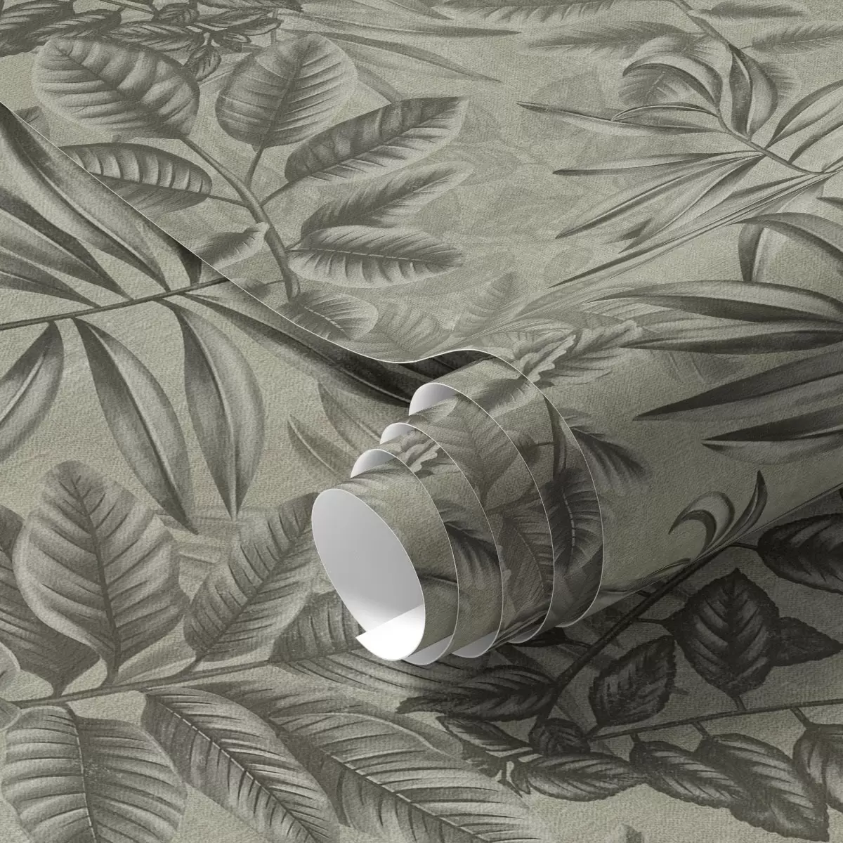 Tapetti Harmaa trooppinen lehdet eri muotoja vintage taustalla Nr. a00297