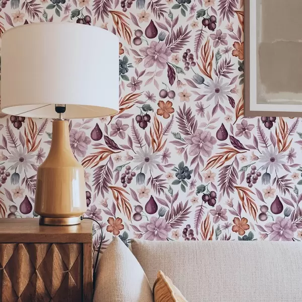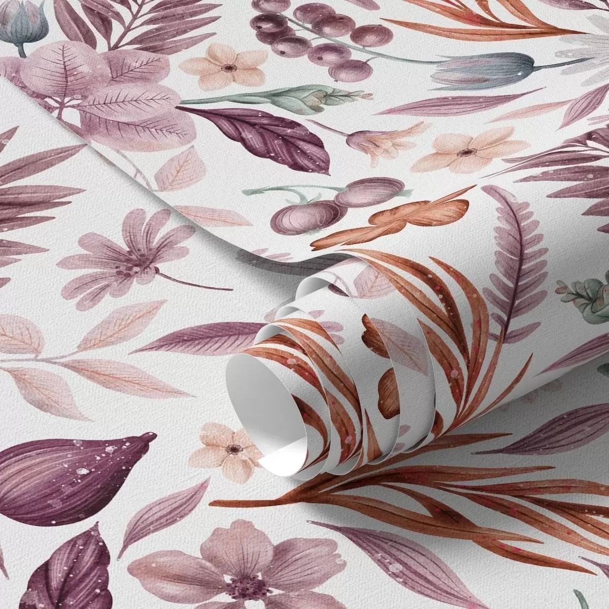 Tapetti Kirkkaita marjoja, kukkia ja lehtiä vesivärityyliin Nr. a00298