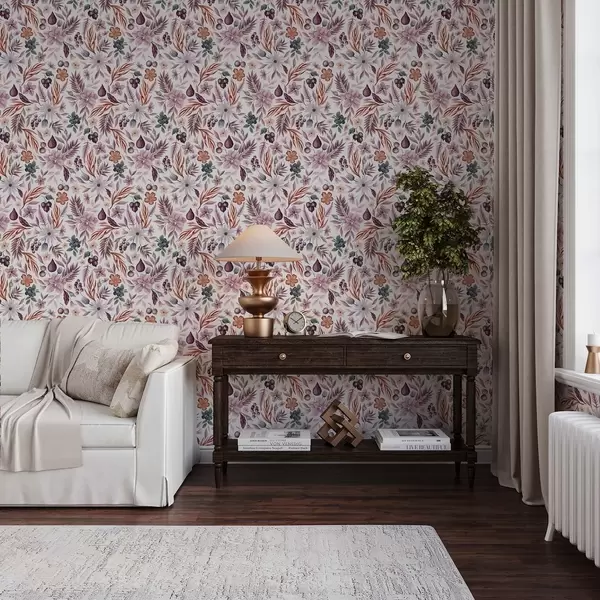 Tapetti Kirkkaita marjoja, kukkia ja lehtiä vesivärityyliin Nr. a00298