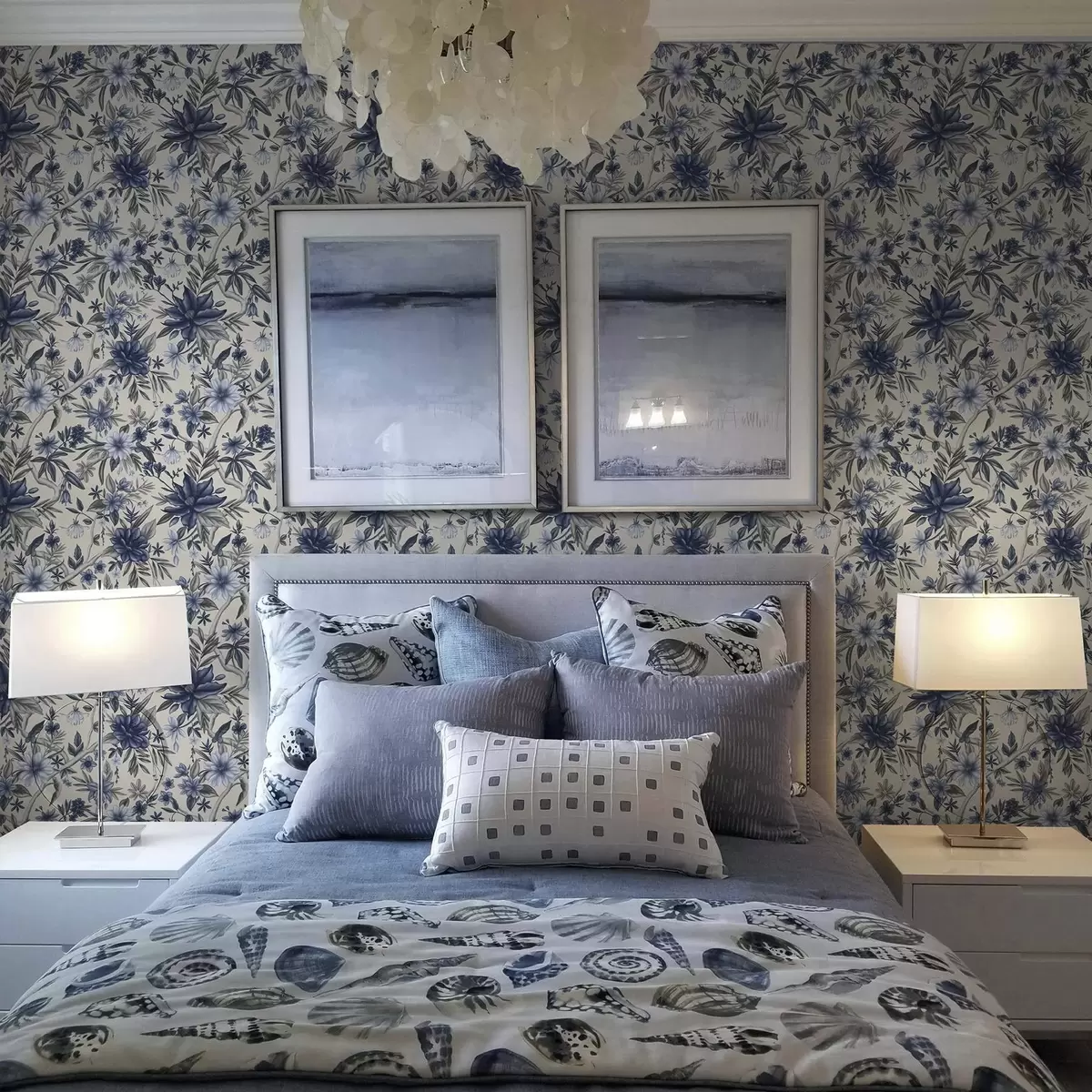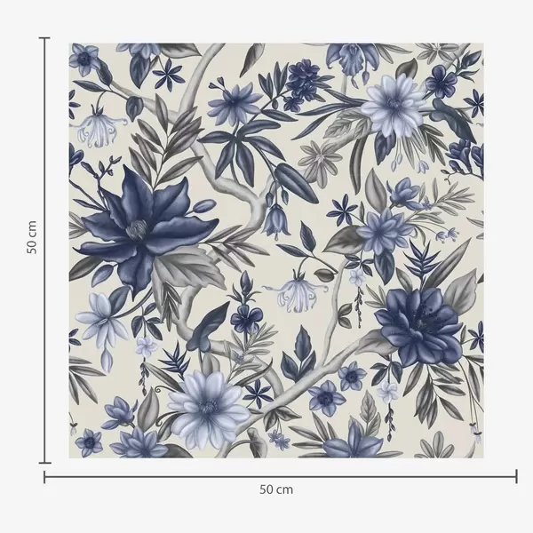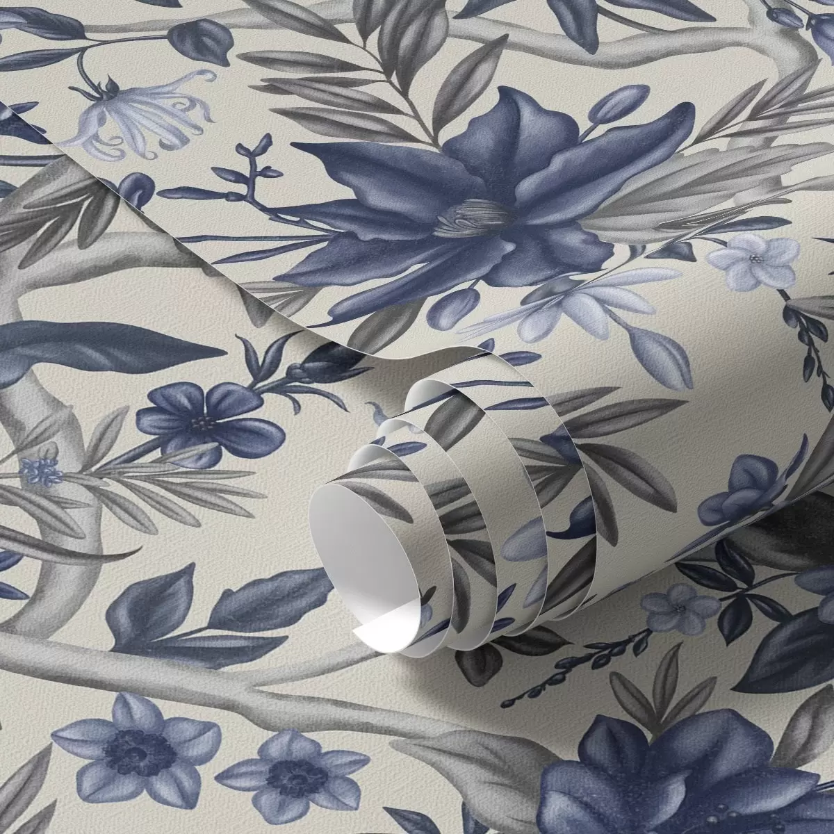 Tapetti Sinisiä ja harmaita kukkia vaalealla taustalla Nr. a00304