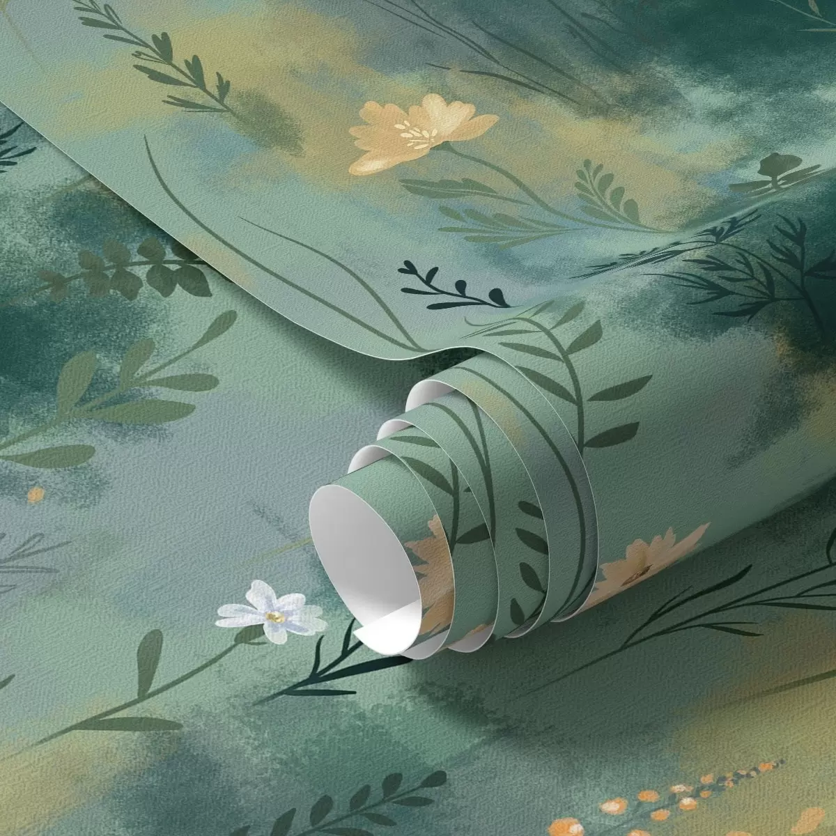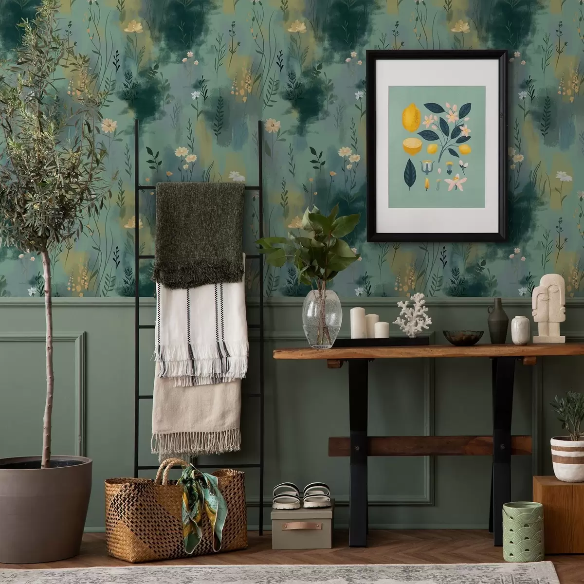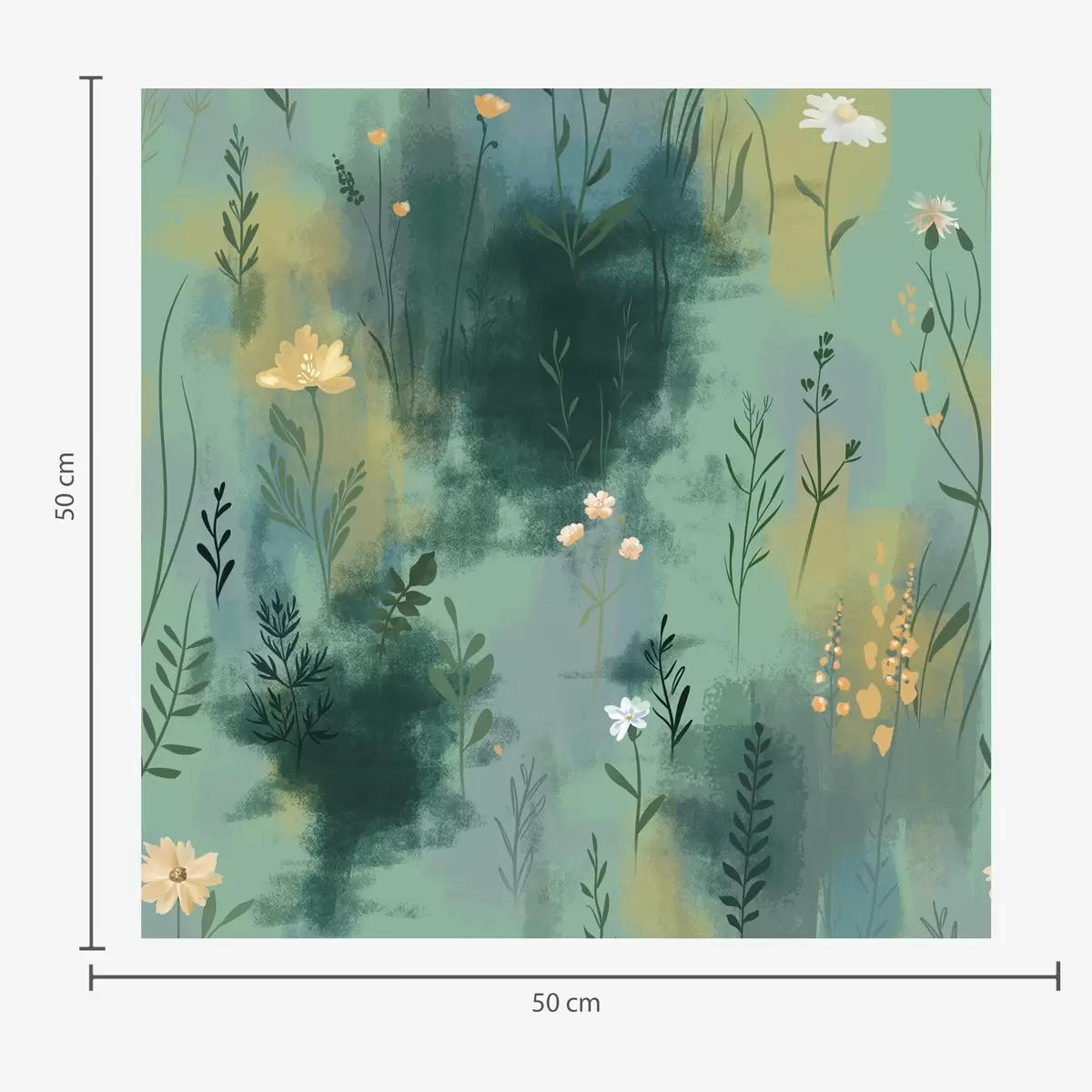 Tapetti Akvarelli abstraktio kukkia vihreällä taustalla Nr. a00312