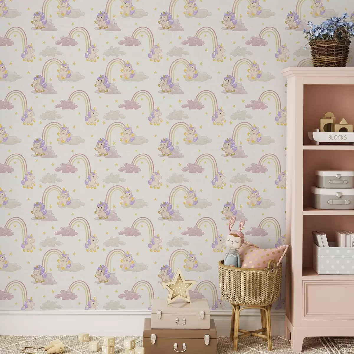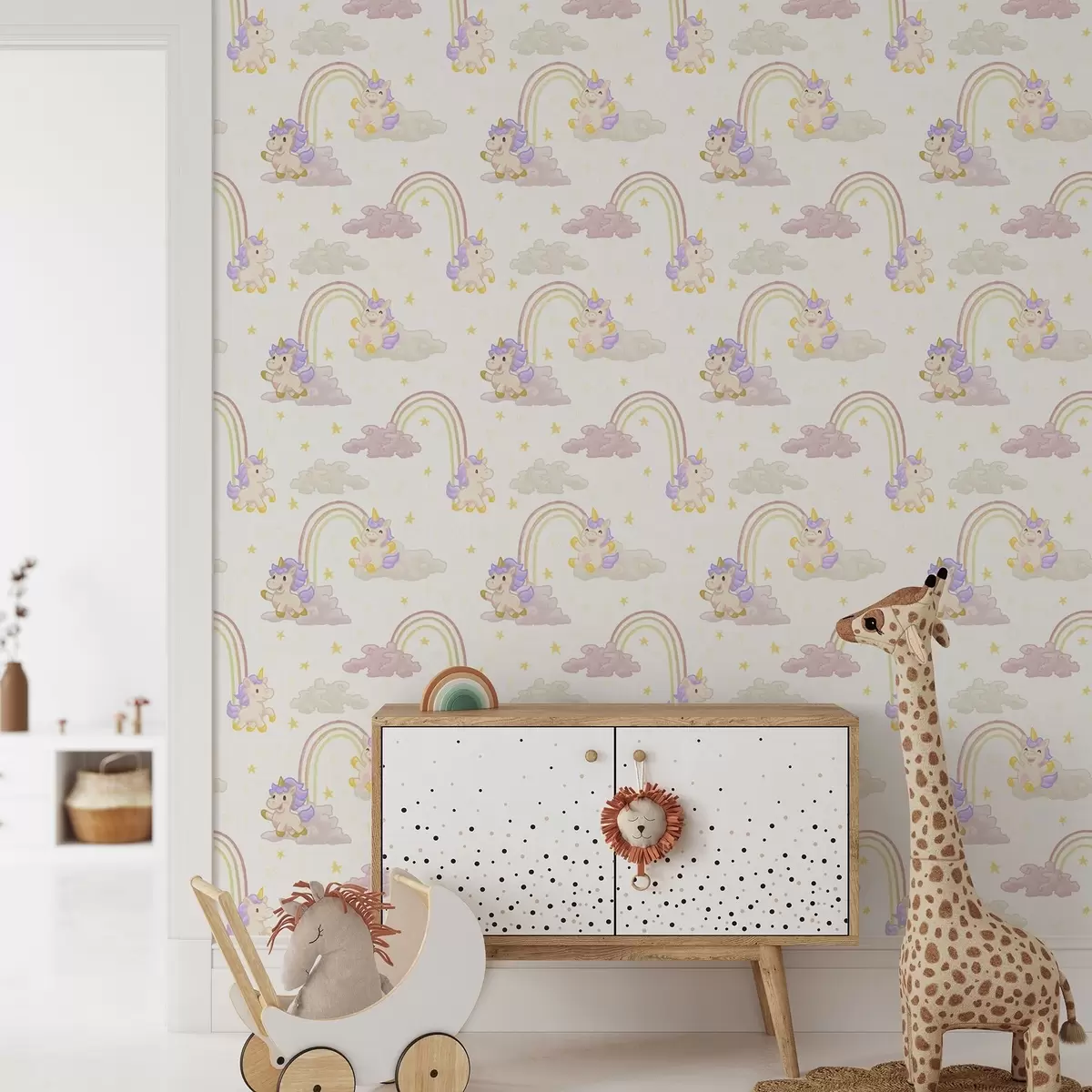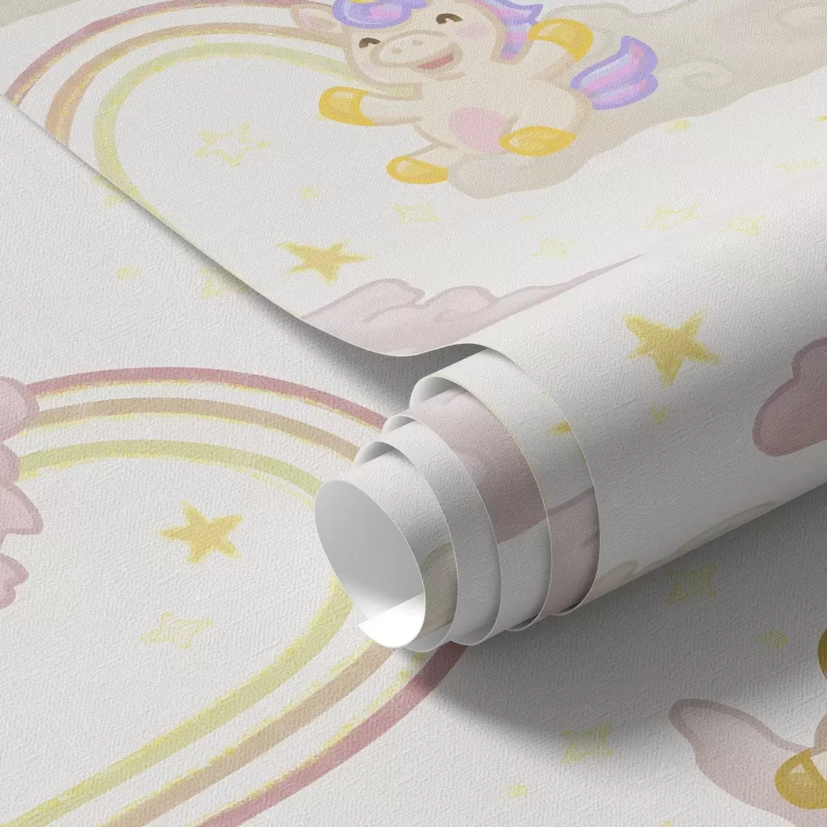 Tapetti Söpö yksisarvinen sateenkaarilla ja tähdet Nr. a00339