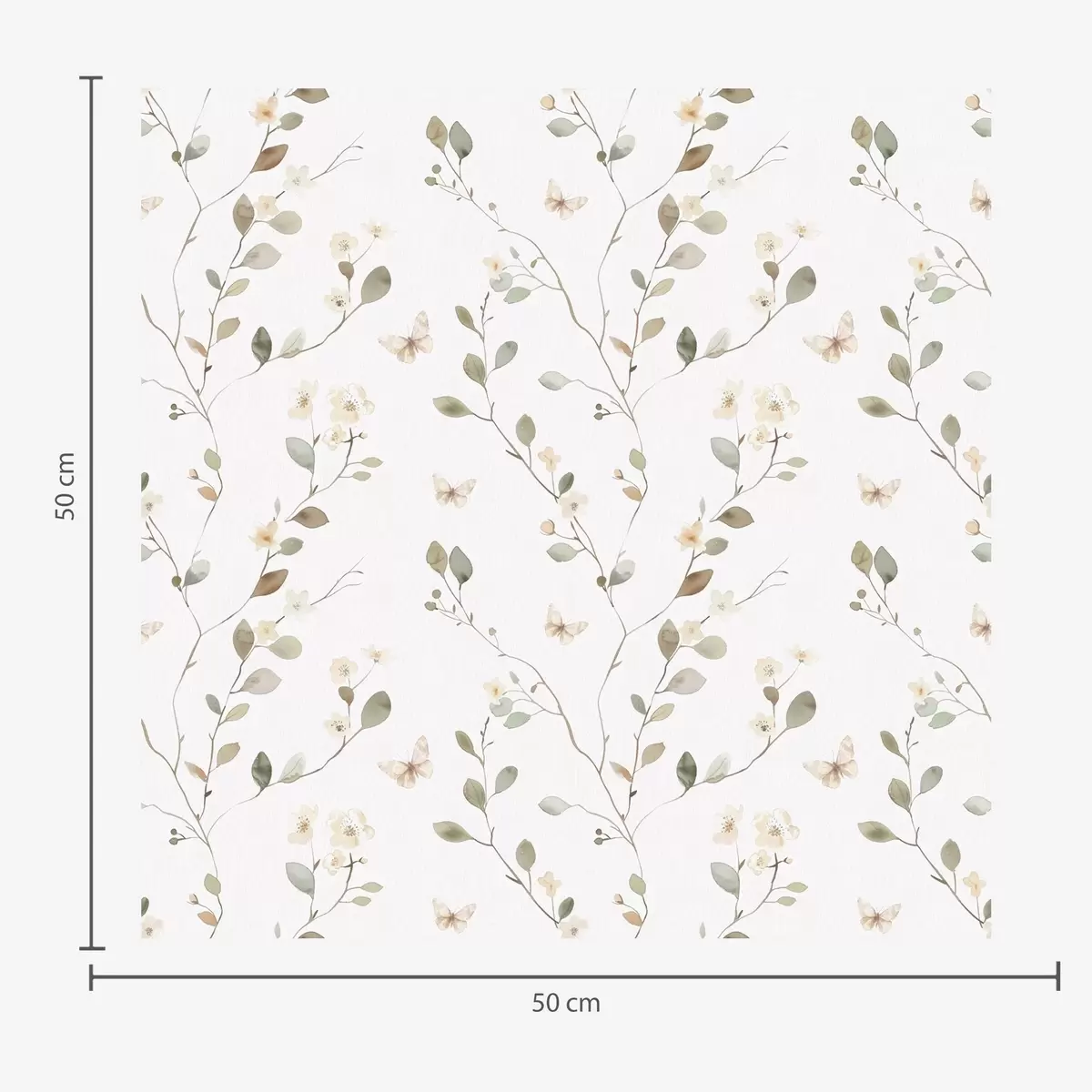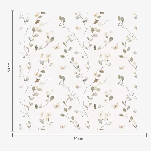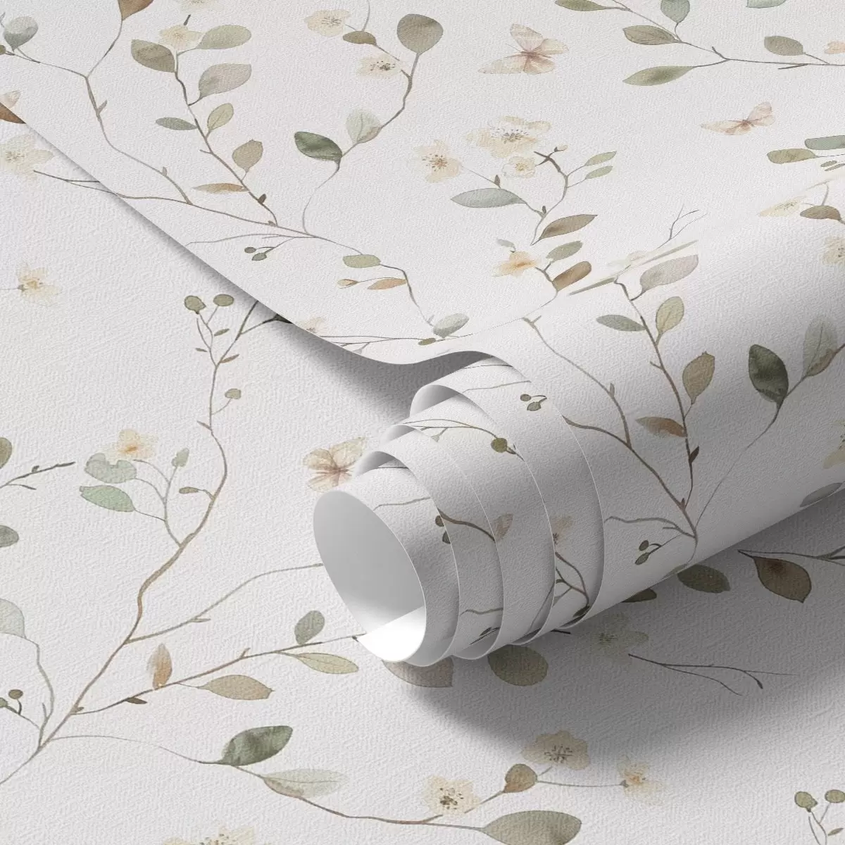 Tapetti Ohuet oksat kukkia ja perhosia valkoisella taustalla Nr. a00342