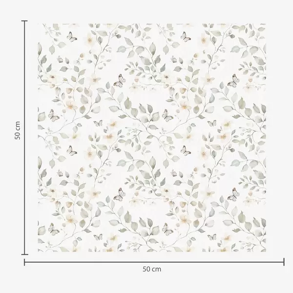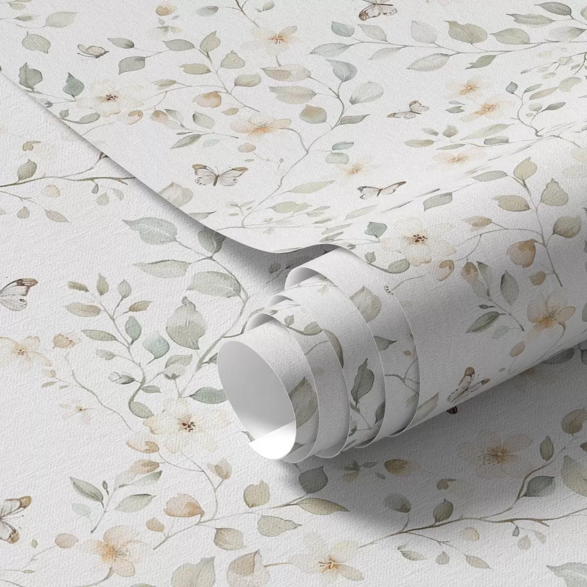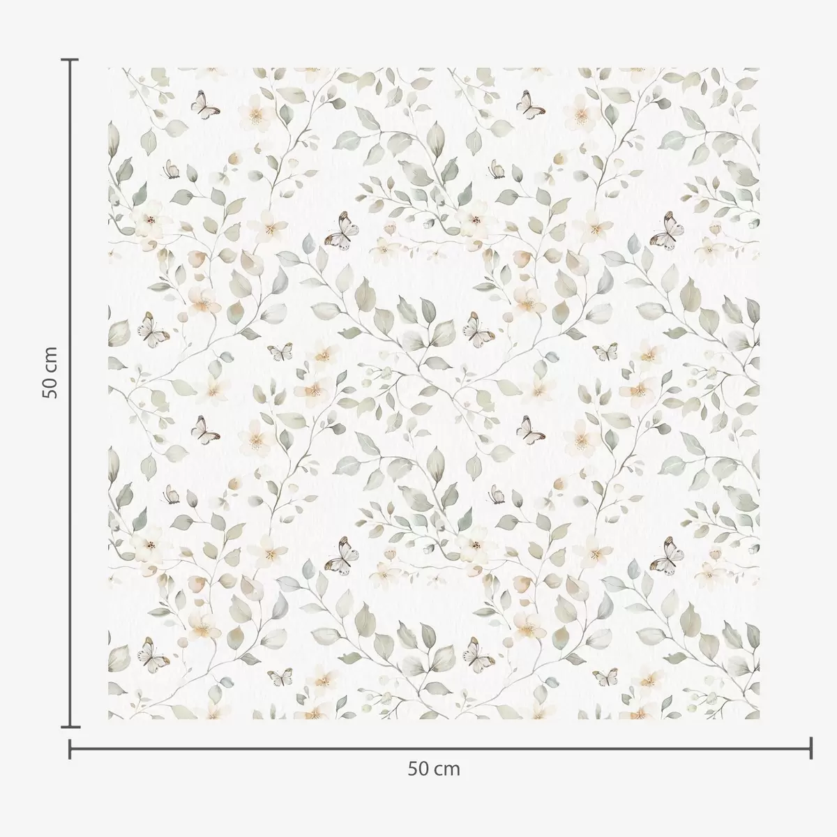 Tapetti Kevyet oksat, joissa on lehtiä ja kukkia pienessä toistossa Nr. a00343