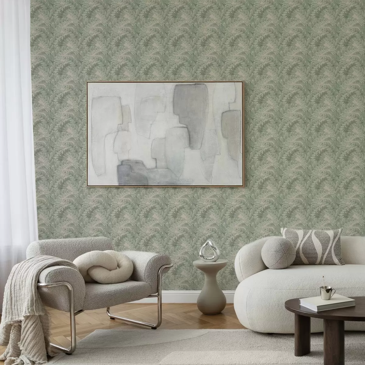 Tapetti Vihreä kuvio saniaisen lehdillä Nr. a00345