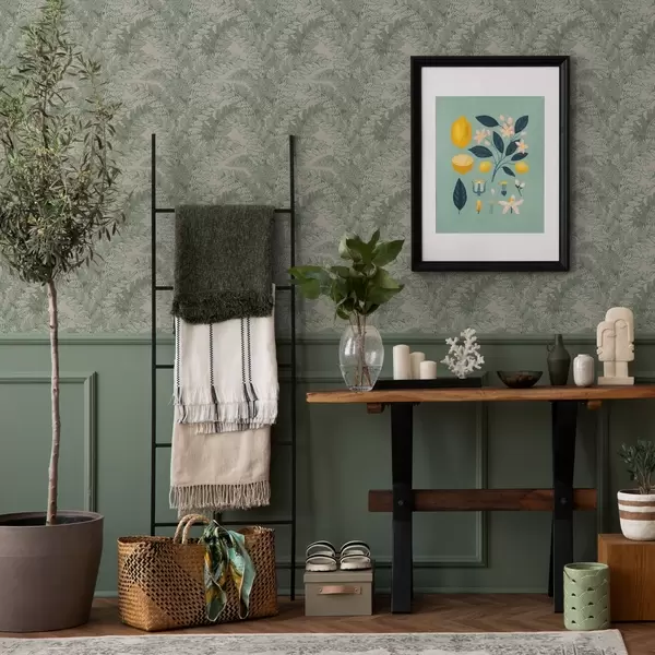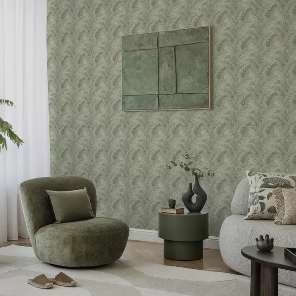 Tapetti Vihreä kuvio saniaisen lehdillä Nr. a00345