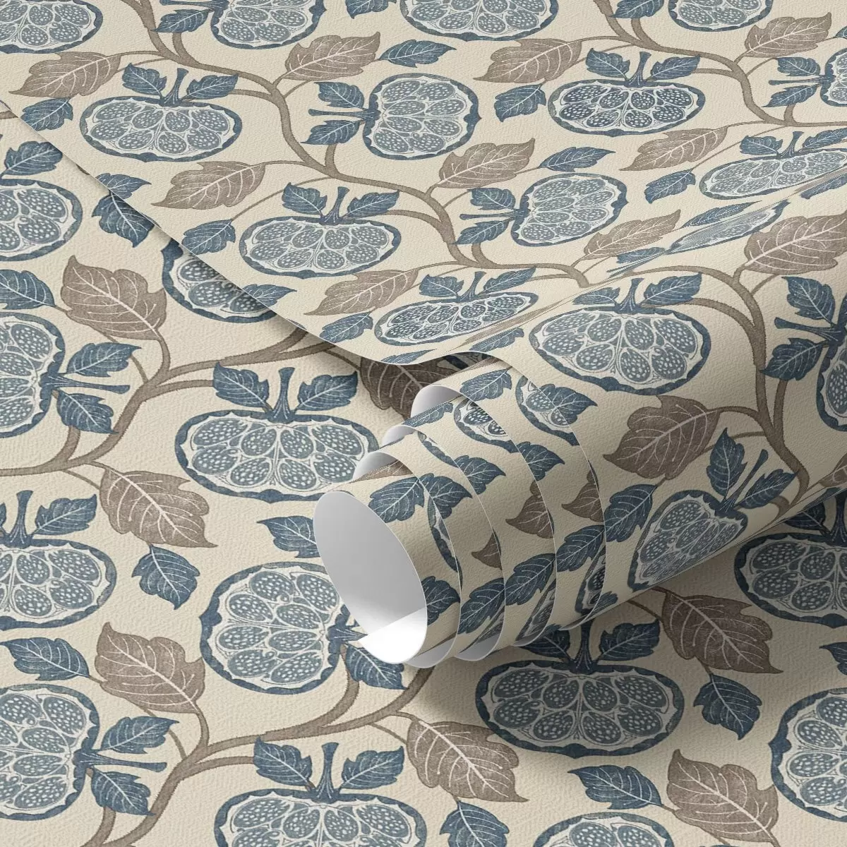 Tapetti Symmetrinen kuvio, jossa on sinisiä ja beigejä elementtejä Nr. a00360