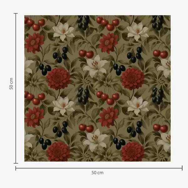 Tapetti Kirsikoita, kukkia ja mustia oliiveja Nr. a00384