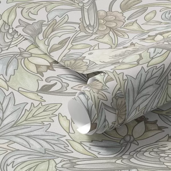 Tapetti Jugendtyyliset linnut ja pastelliväriset tyylitellyt kukat Nr. a00385