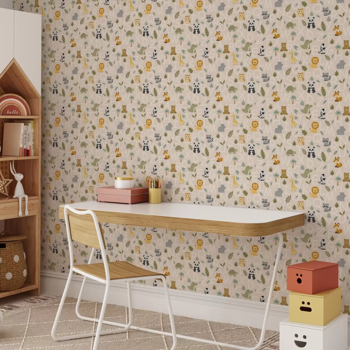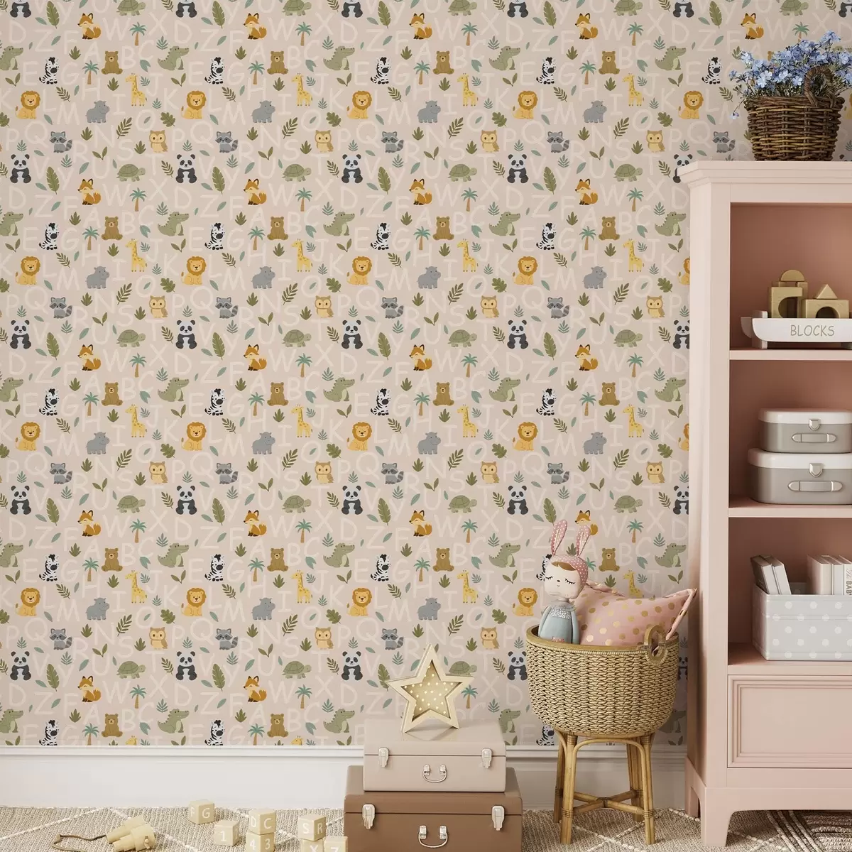 Tapetti Aakkoset söpöjä eläimiä ja kasveja lapsille Nr. a00400