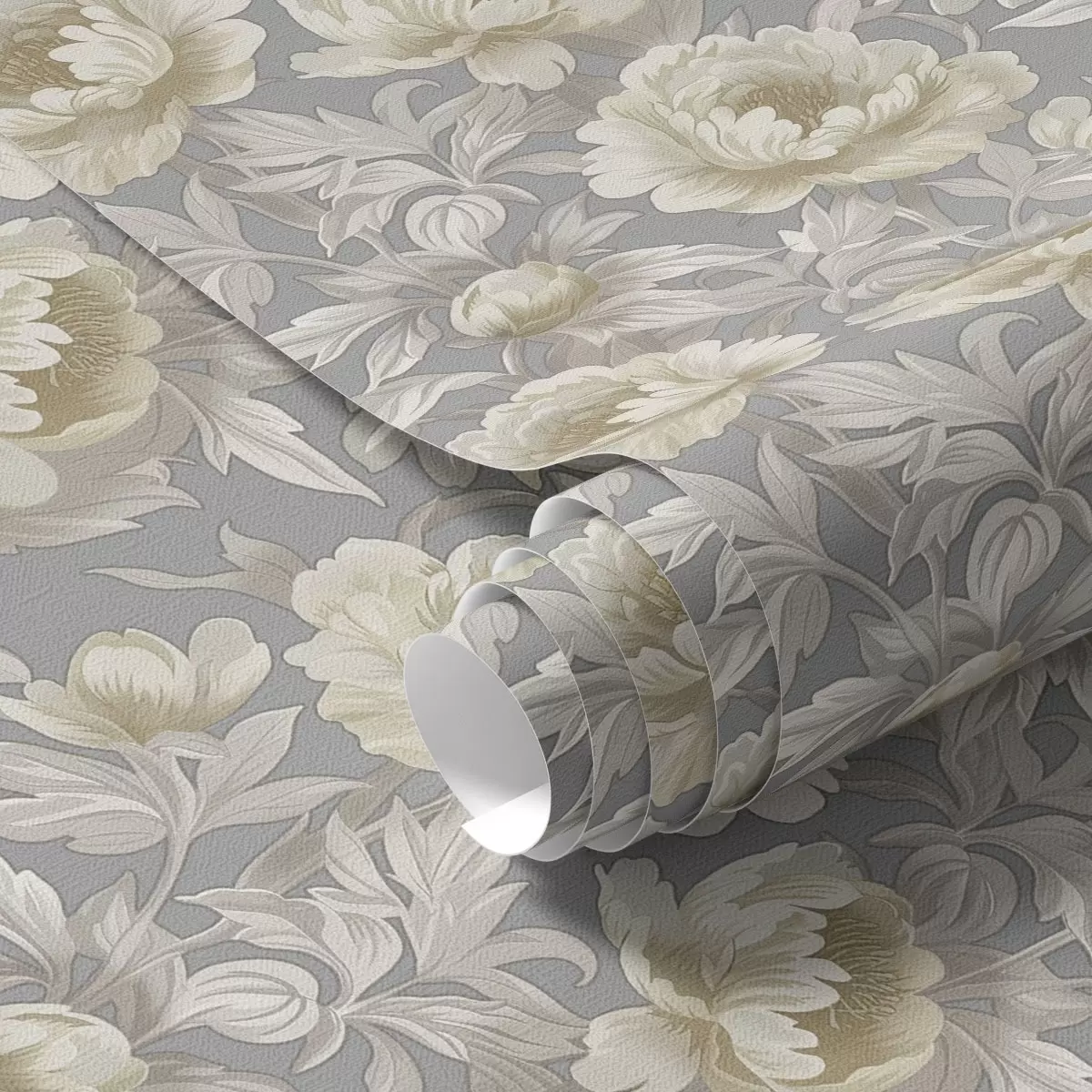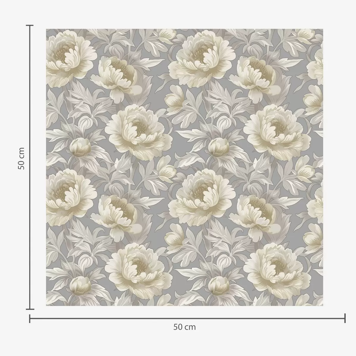 Tapetti Reheviä pioneita ja lehtiä harmaalla pohjalla Nr. a00403