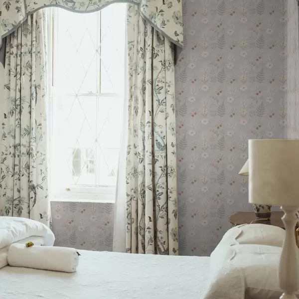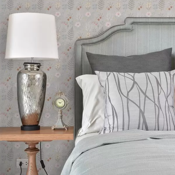 Tapetti Pastellivärisiä kukkia ja marjoja vaaleanharmaalla pohjalla Nr. a00406