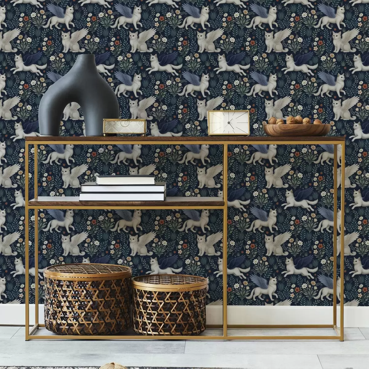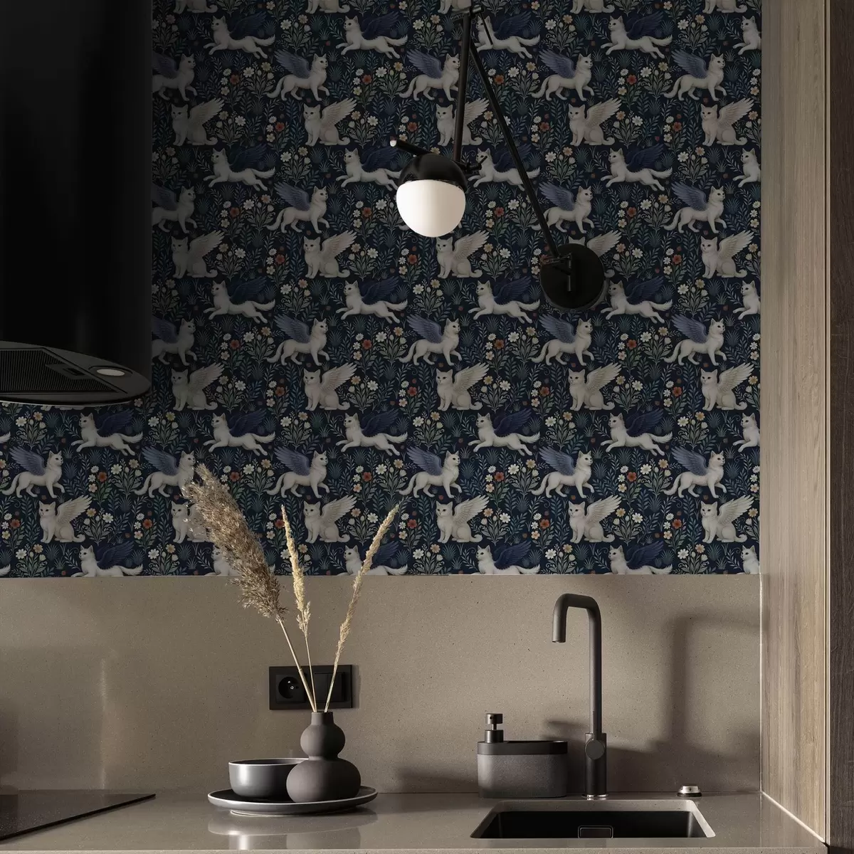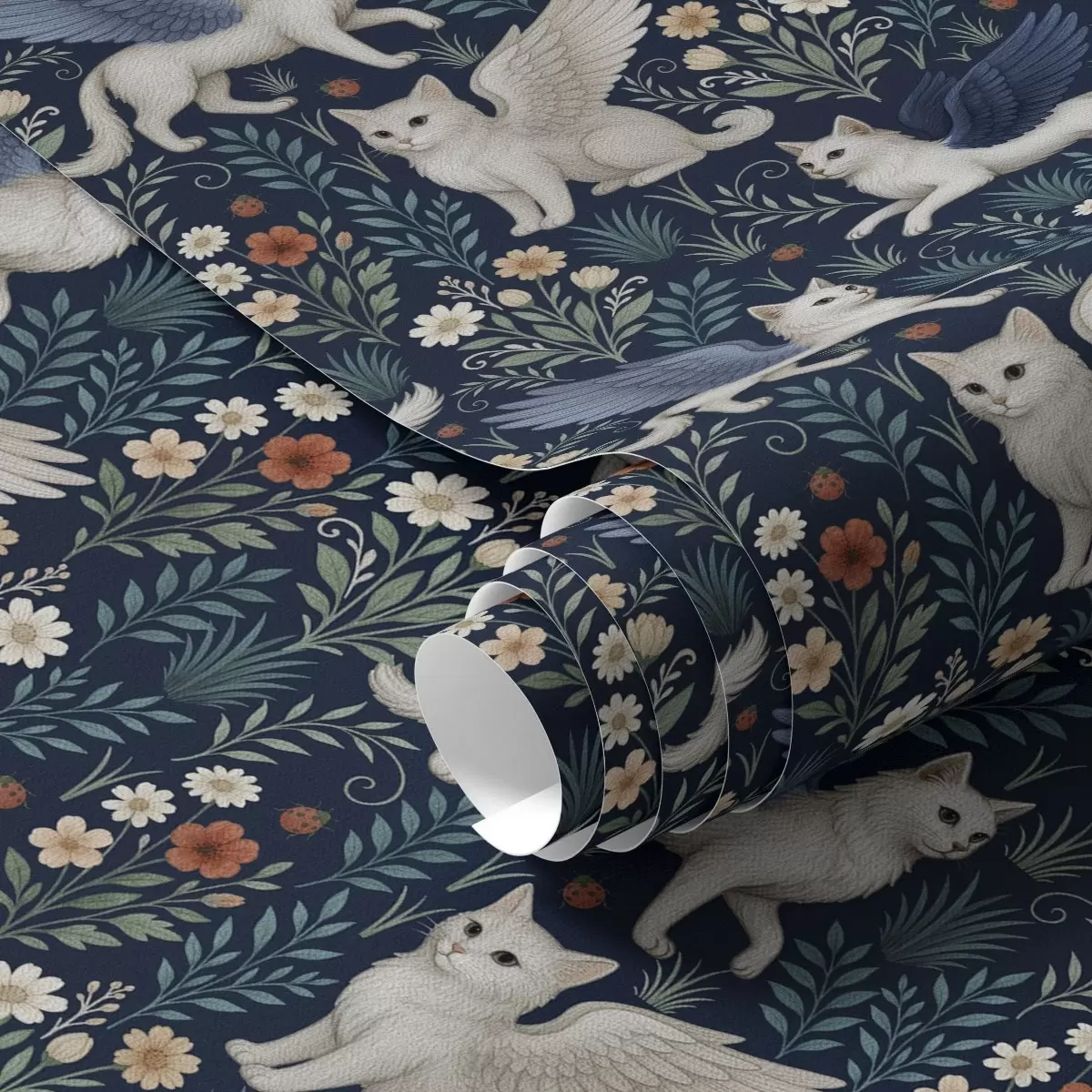 Tapetti Fantasia kissat siivet kukkien keskellä Nr. a00408