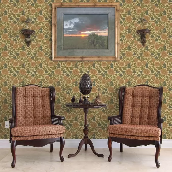 Tapetti Oranssit kukat ja lehdet jugendtyyliin Nr. a00409