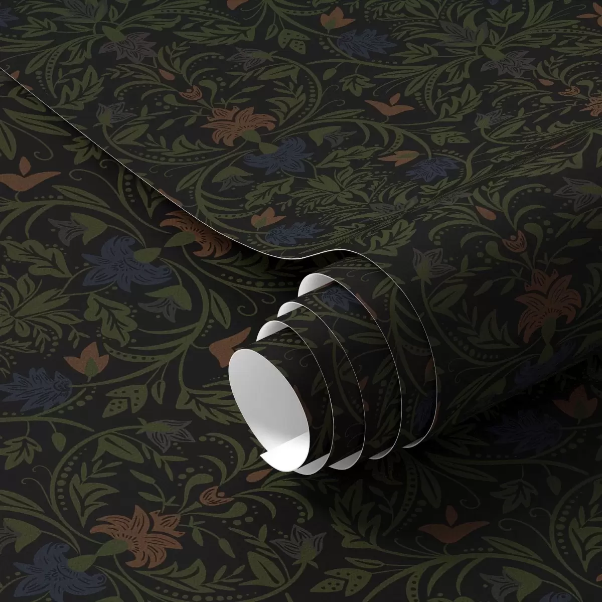 Tapetti Tumma koriste kasveilla klassiseen tyyliin Nr. a00412