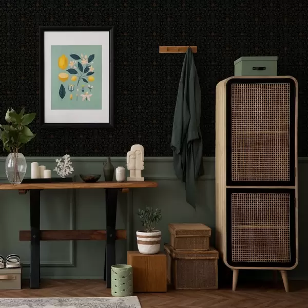 Tapetti Tumma koriste kasveilla klassiseen tyyliin Nr. a00412