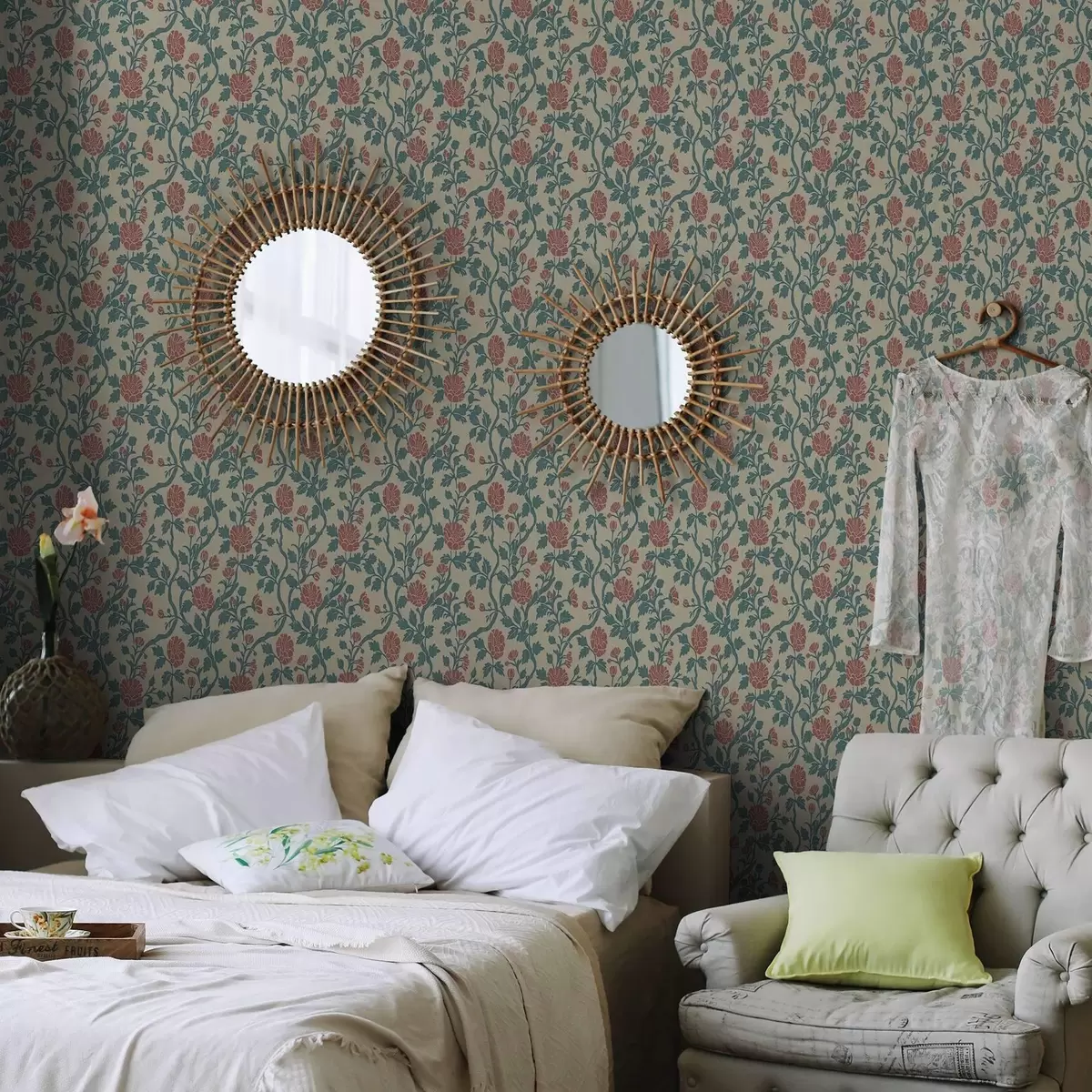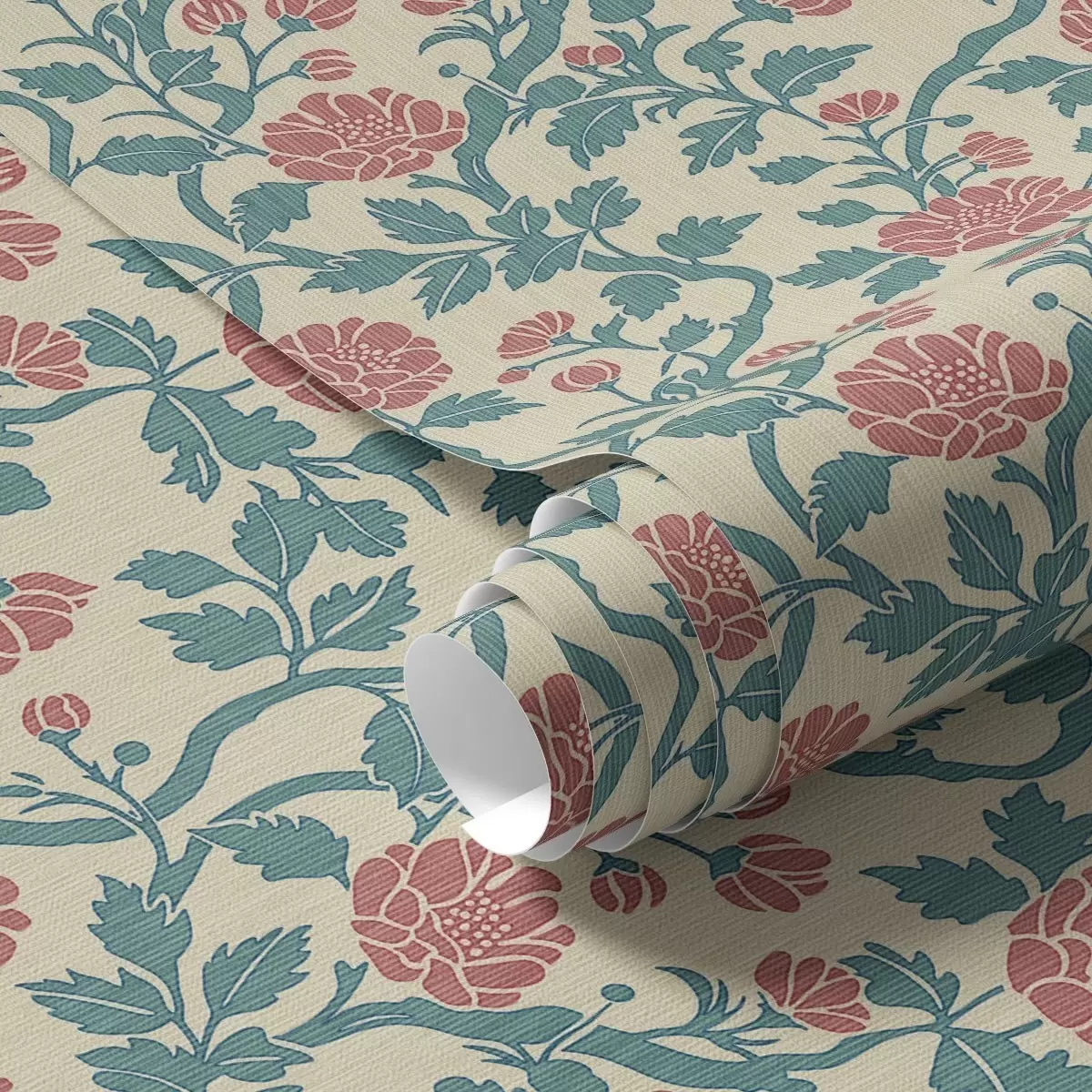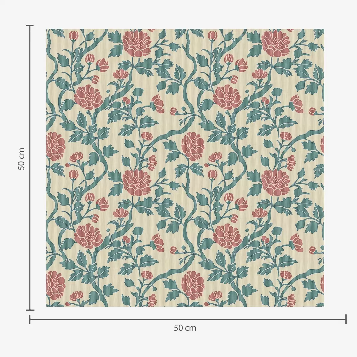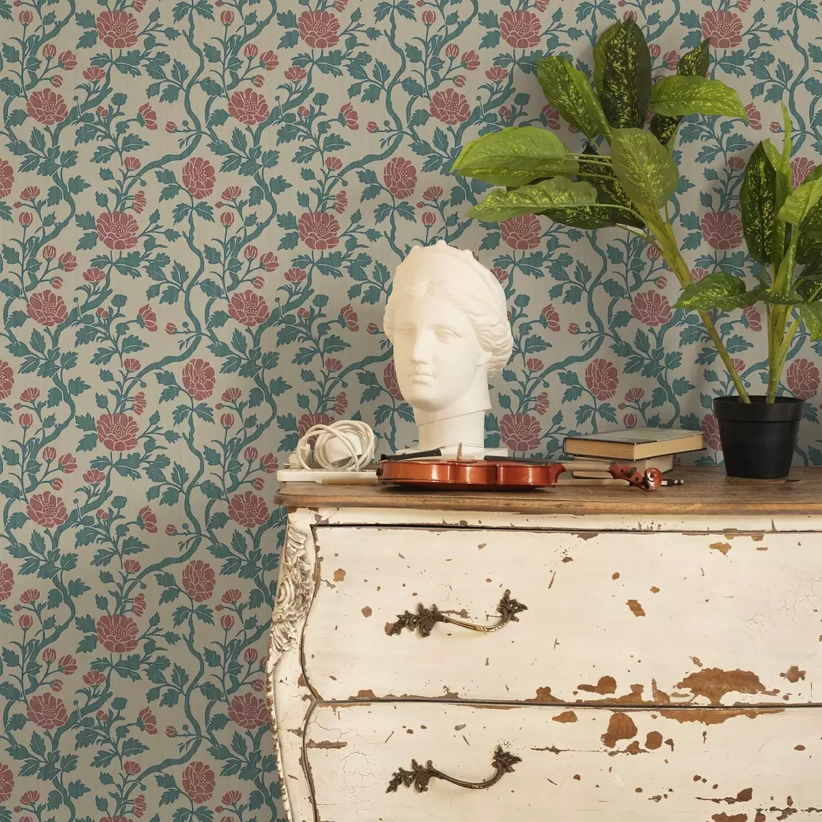 Tapetti Koristeellisia vaaleanpunaisia kukkia beigellä pohjalla Nr. a00414