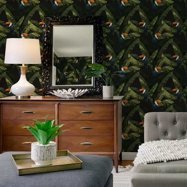 Tapetti Tukaani trooppisissa lehdissä Nr. a00415