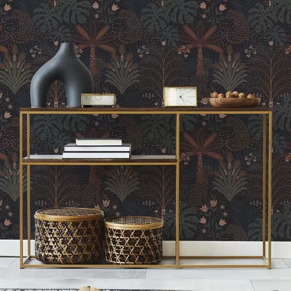 Tapetti Tumma viidakko leopardien, palmujen ja kukkien kanssa Nr. a00424