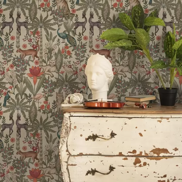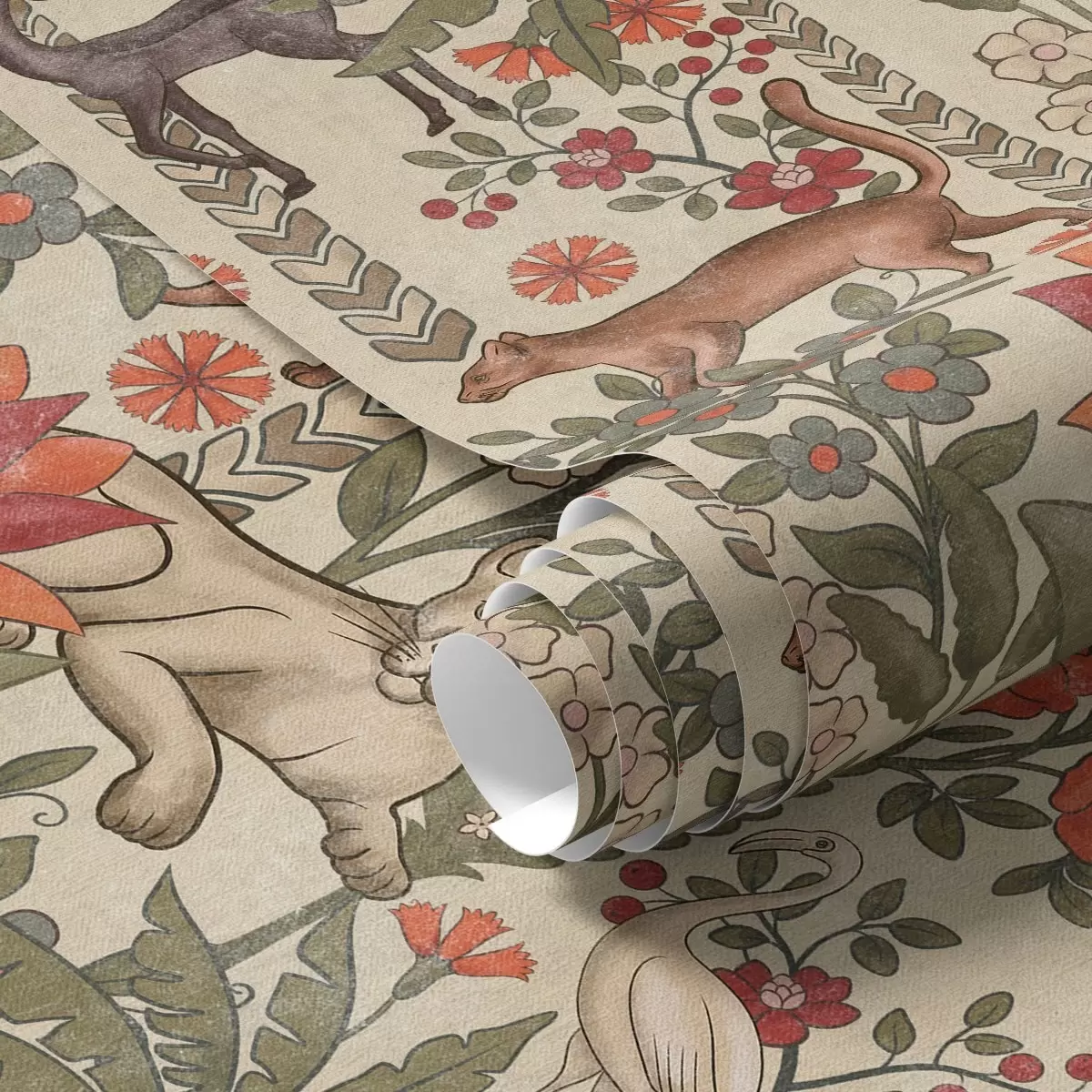 Tapetti Retro-tyyli: Vintage-tausta: Eläimiä ja kukkia vintage-taustalla Nr. a00431