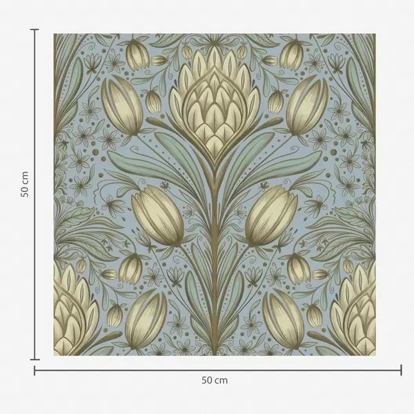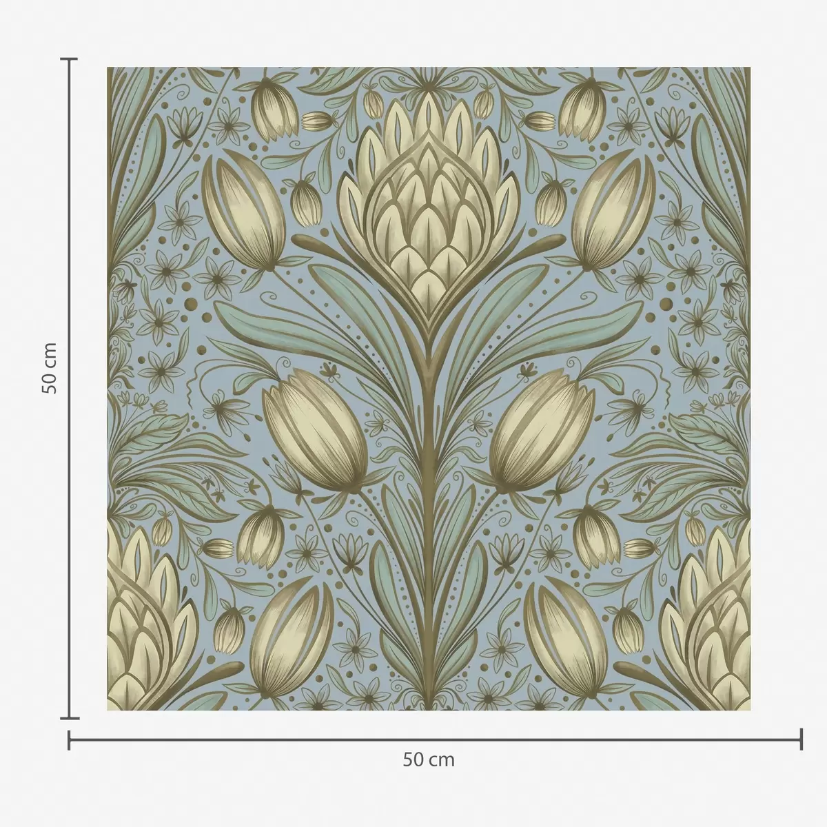 Tapetti Sininen kuvio, jossa on artisokkia ja tulppaaneja Nr. a00435